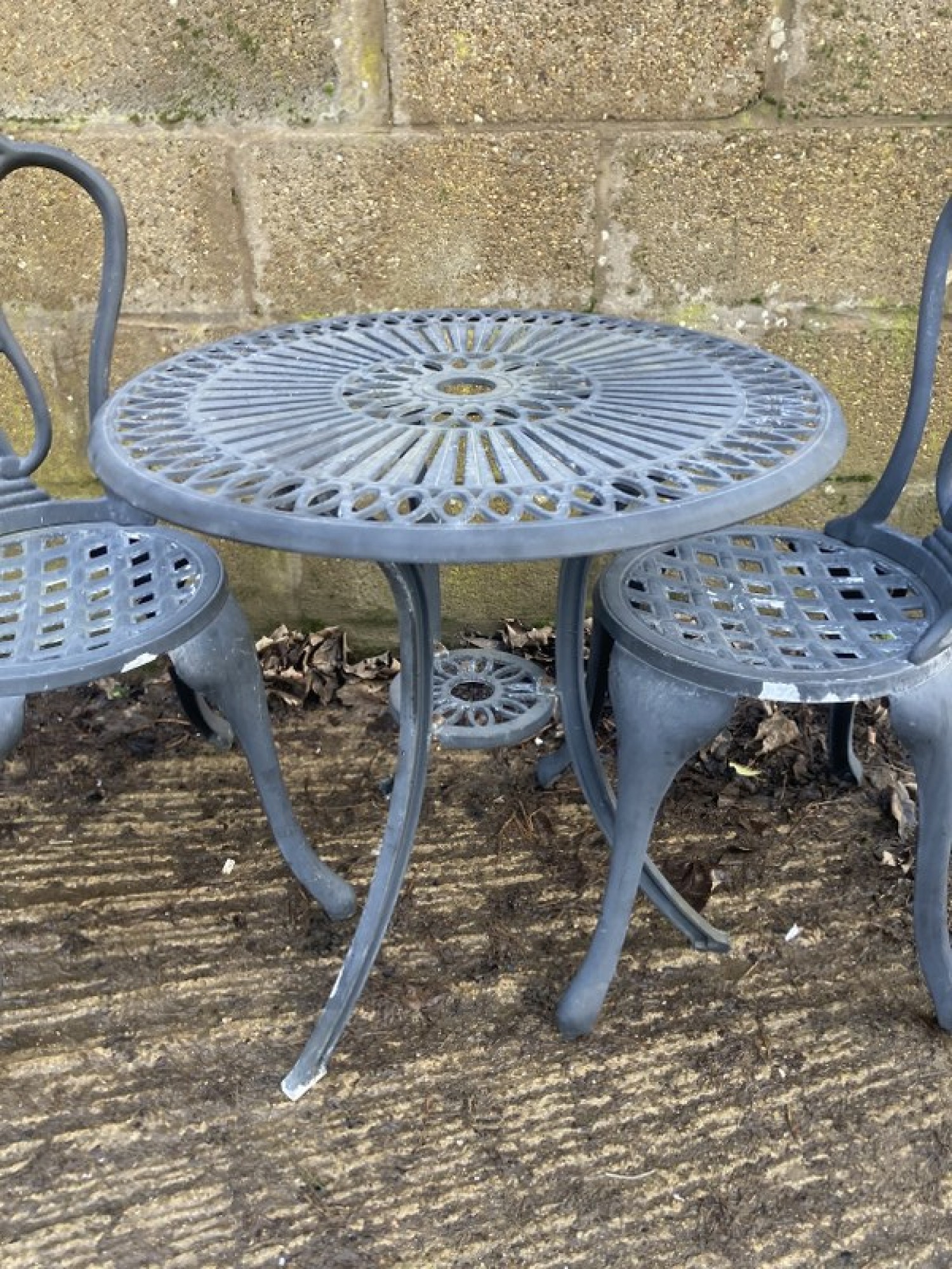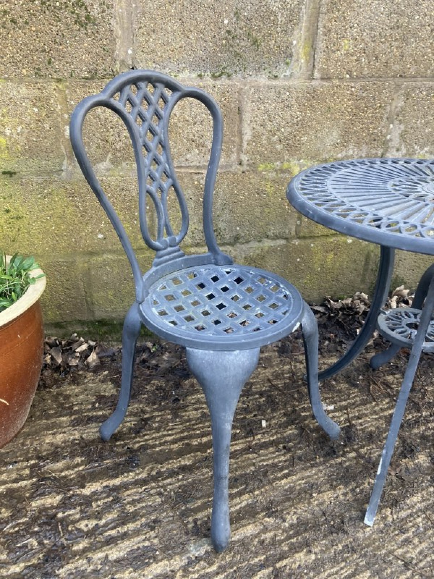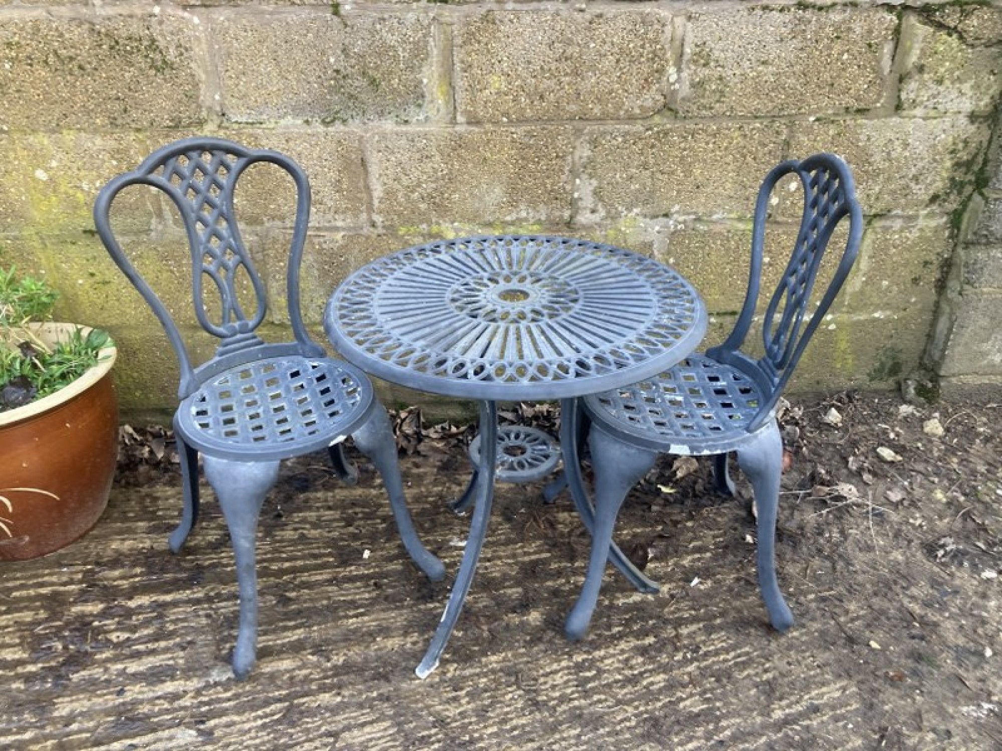 Items for Sale METAL OUTDOOR GARDEN TABLE & 2 CHAIRS Share: View Larger Image View Larger Image View Larger Image View Larger Image View Larger Image Select to enlarge Swipe £ 50 - THE SET A TABLE & 2 METAL GARDEN CHAIRS. A LIGHTWEIGHT METAL SET, GOOD QUALITY AND IN AVERAGE CONDITION. HEIGHT TO SEAT IS 42cm. CHAIR SIZES ARE BELOW. THE TABLE IS 63cm DIAMETER AND 65cm HIGH. ADDITIONAL DETAILS RESERVE ITEM Condition:AVERAGE Manufacture Date:2000s Height:85 cms Length:40 cms Depth:41 cms Item Number:41081 * Please complete all the fields below to send an enquiry about this product. Please reserve this item for me… Reset Send