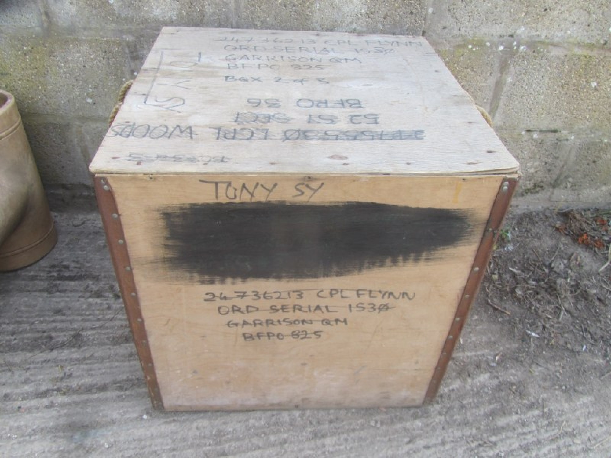 VINTAGE PLYWOOD CHEST WITH LID. IN WORN CONDITION. IDEAL FOR STORAGE OR DISPLAY.