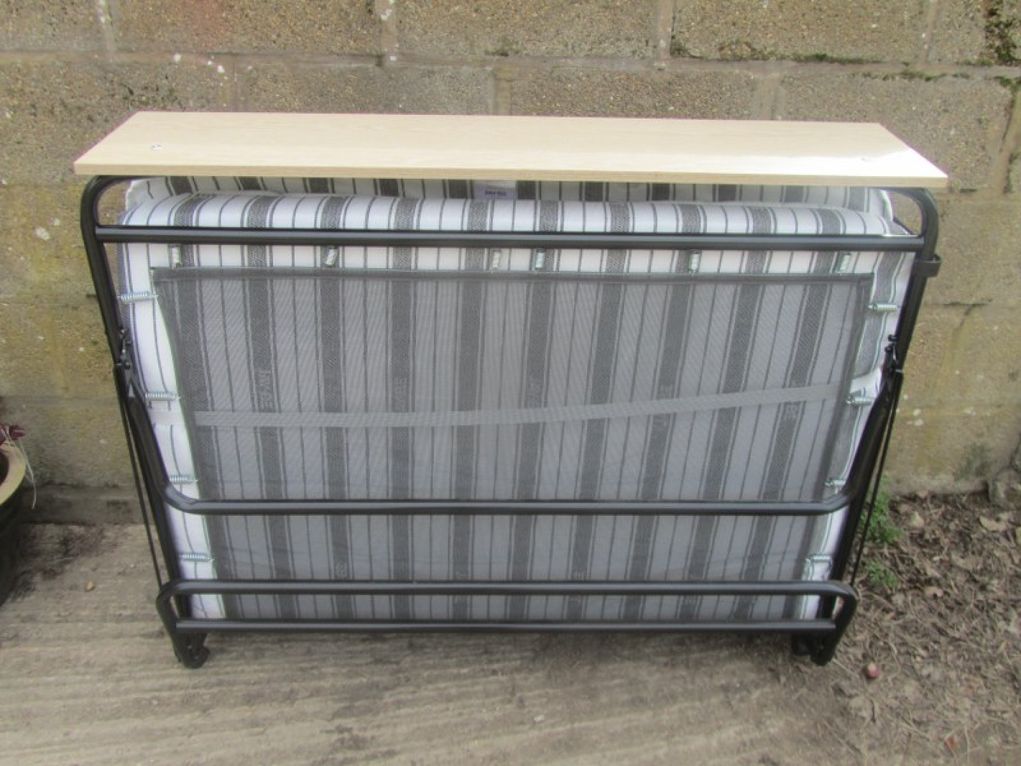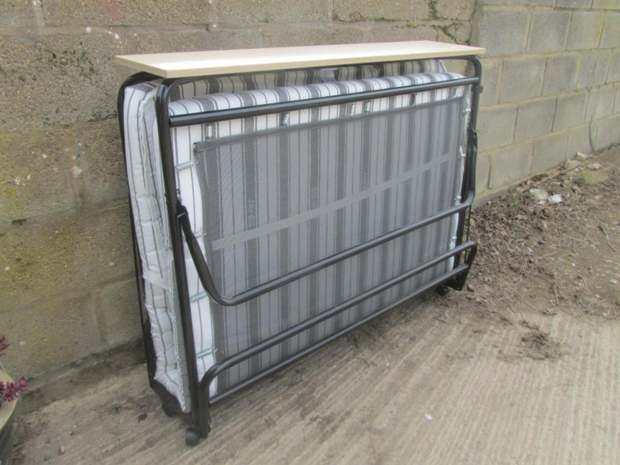 A 4' BED IN CLEAN CONDITION. THE BASE FOLDS OUT EASILY. THE MATTRESS IS CLEAN. HARDLY USED. IDEAL FOR A SPARE ROOM, OR FOR GUESTS. ITS ON WHEELS AND CAN EASILY BE MOVED FROM ROOM TO ROOM. WHEN NOT IN USE IT FOLDS UP NEATLY AND EASILY. THIS IS INTENDED FOR OCCASIONAL USE, NOT FOR DAILY USE. WHEN OPEN IT IS 190cm LONG.