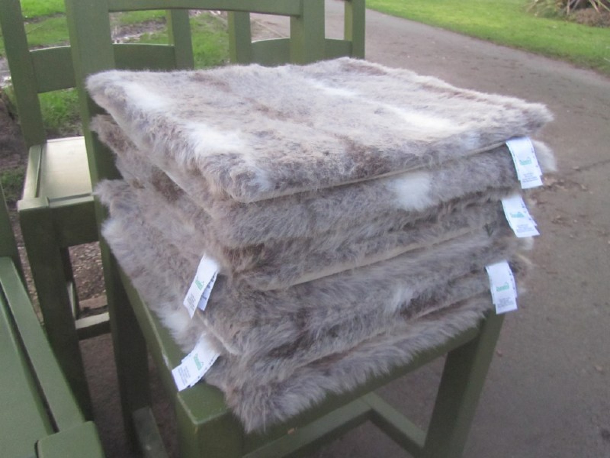 HEIGHT TO SEAT IS 46cm. INCLUDES 8 SEAT PADS IN A FAUX FUR.