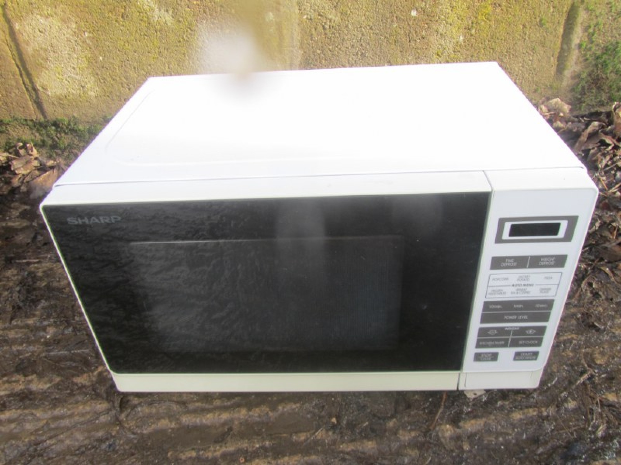A WHITE MICROWAVE WITH EASY TO USE CONTROLS. GOOD CONDITION.