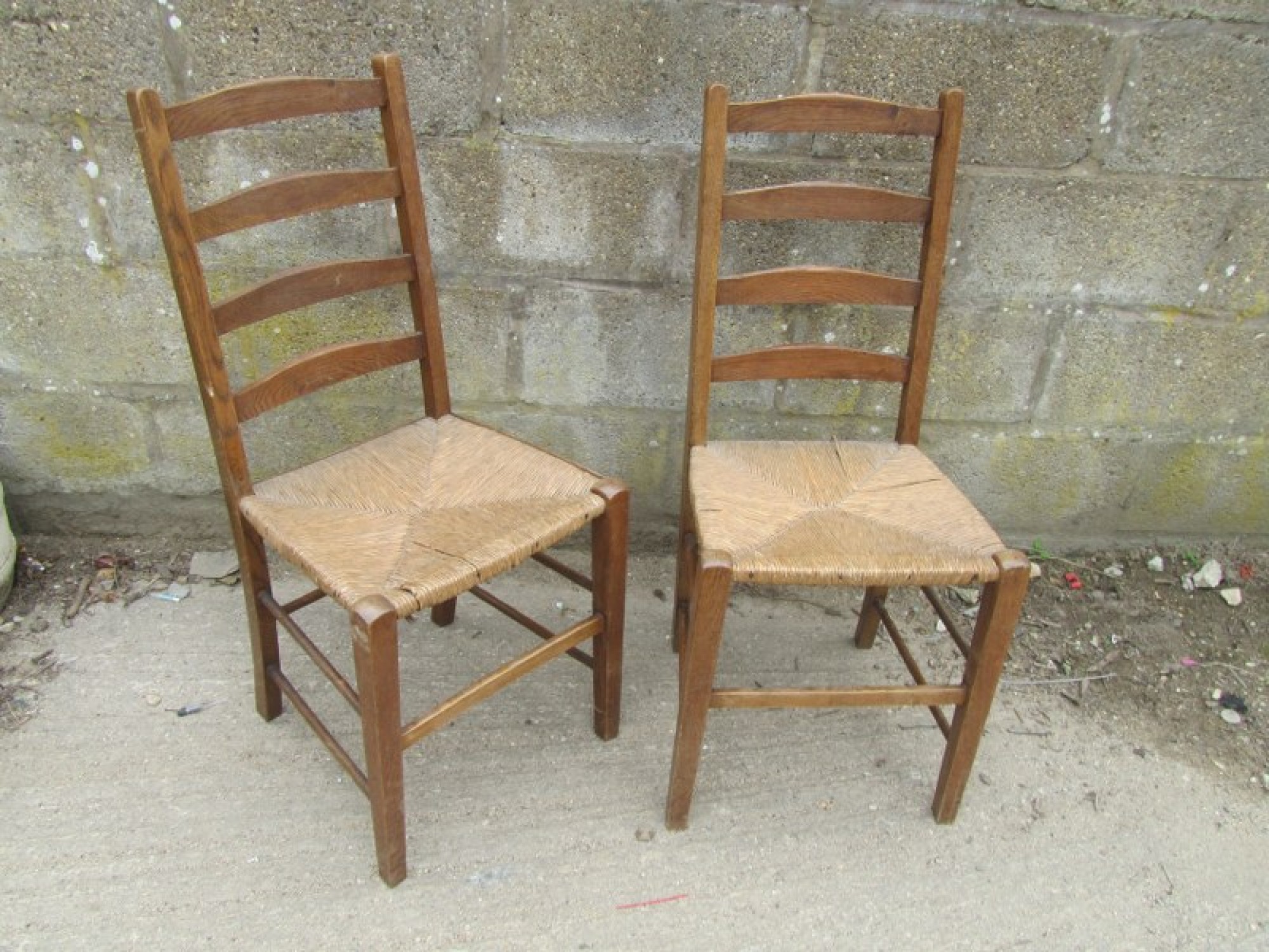 THIS IS A PAIR OF SOLID OAK CHAIRS IN A TRADITIONAL DESIGN. A SIMPLE STYLISH BACK. THE THE SEATS ARE WOVEN.