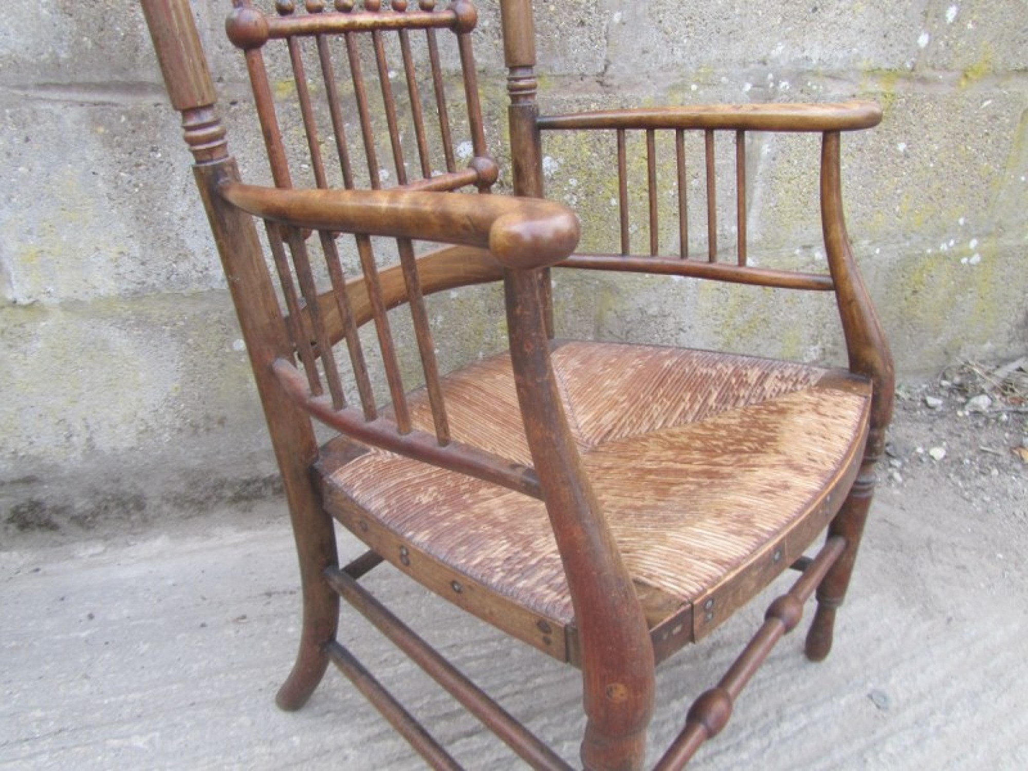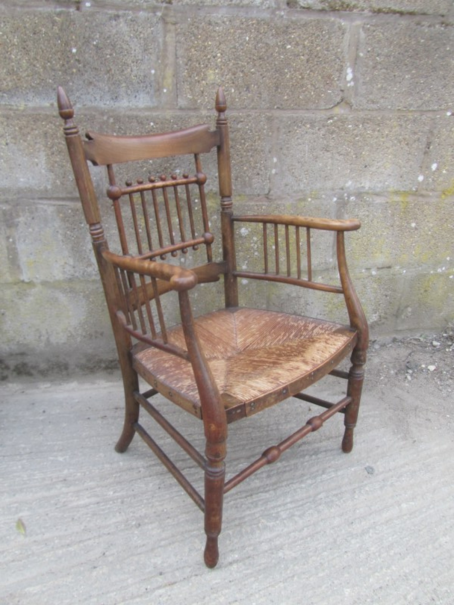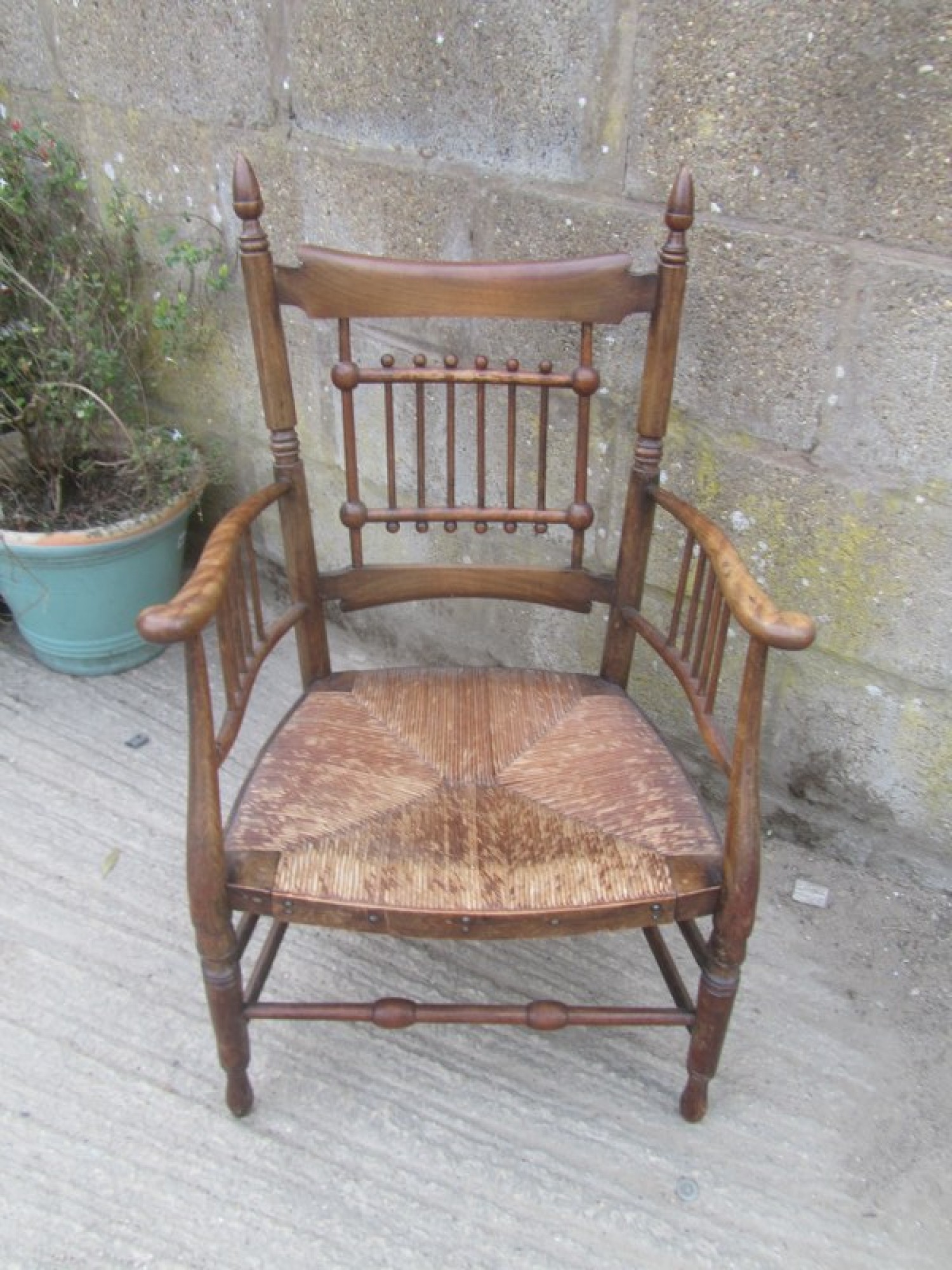 THIS IS A SOLID WOOD ARMCHAIR IN A SECESSIONIST STYLE DESIGN. A SIMPLE STYLISH CHAIR WITH WOVEN BACK REST. THIS DATES FROM AROUND THE 1900s. THE CHAIR IS IN AVERAGE CONDITION, HEIGHT TO SEAT - 38cm.