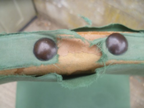 THIS IS A SOLID OAK ARMCHAIR IN A TRADITIONAL DESIGN. A SIMPLE STYLISH CHAIR WITH CARVED DETAIL. THE THE SEAT WAS ORIGINALLY COVERED IN A WORN BROWN LEATHER EFFECT MATERIAL, COVERED OVER WITH GREEN MATERIAL WHICH IS ALSO WORN AND TORN. SOME MARKS.