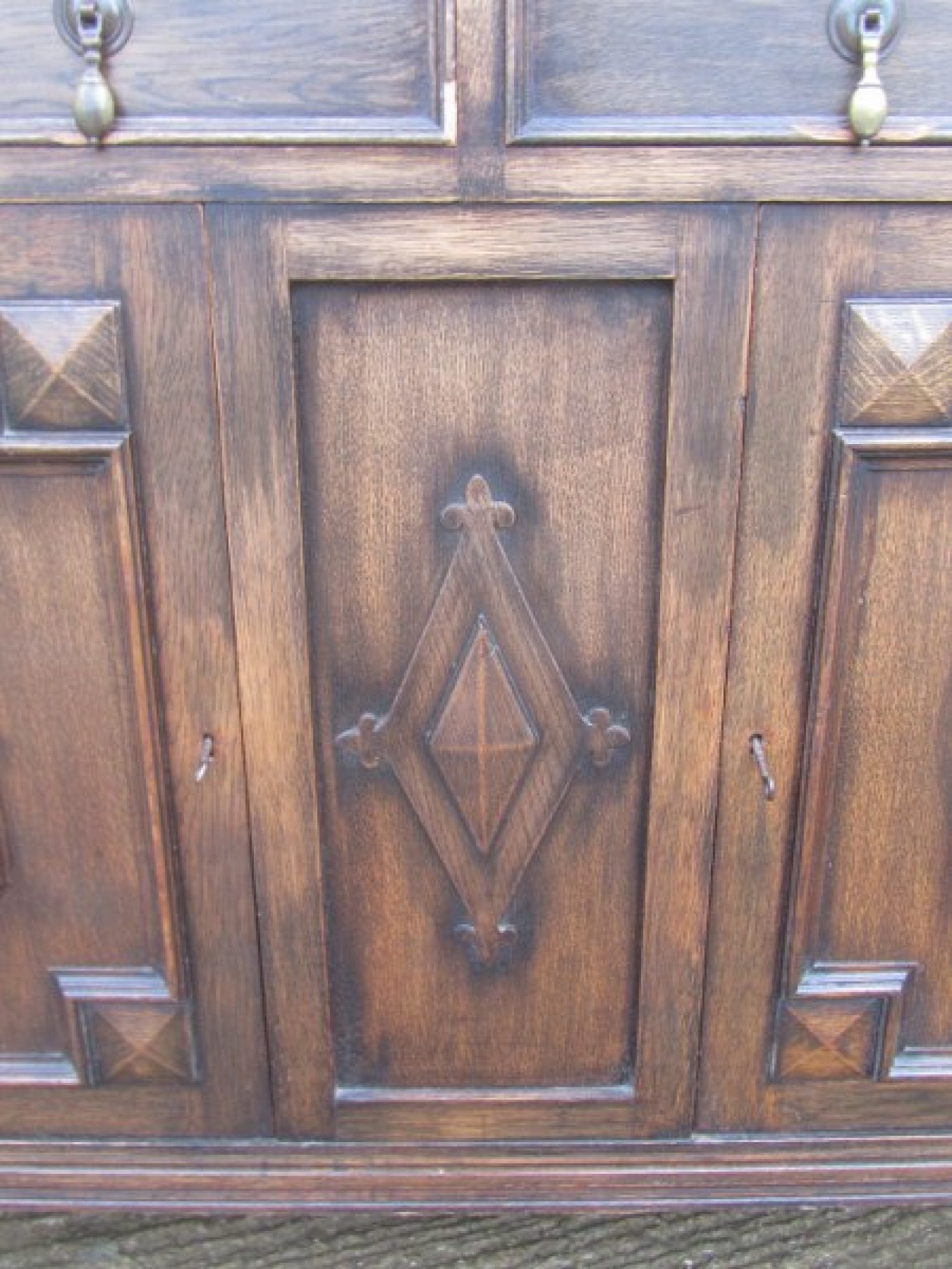 THIS IS A LARGE SIDEBOARD FROM THE 1930s. IT HAS A CABINET EACH SIDE. THERE ARE DRAWERS ABOVE AND PLENTY OF STORAGE SPACE.