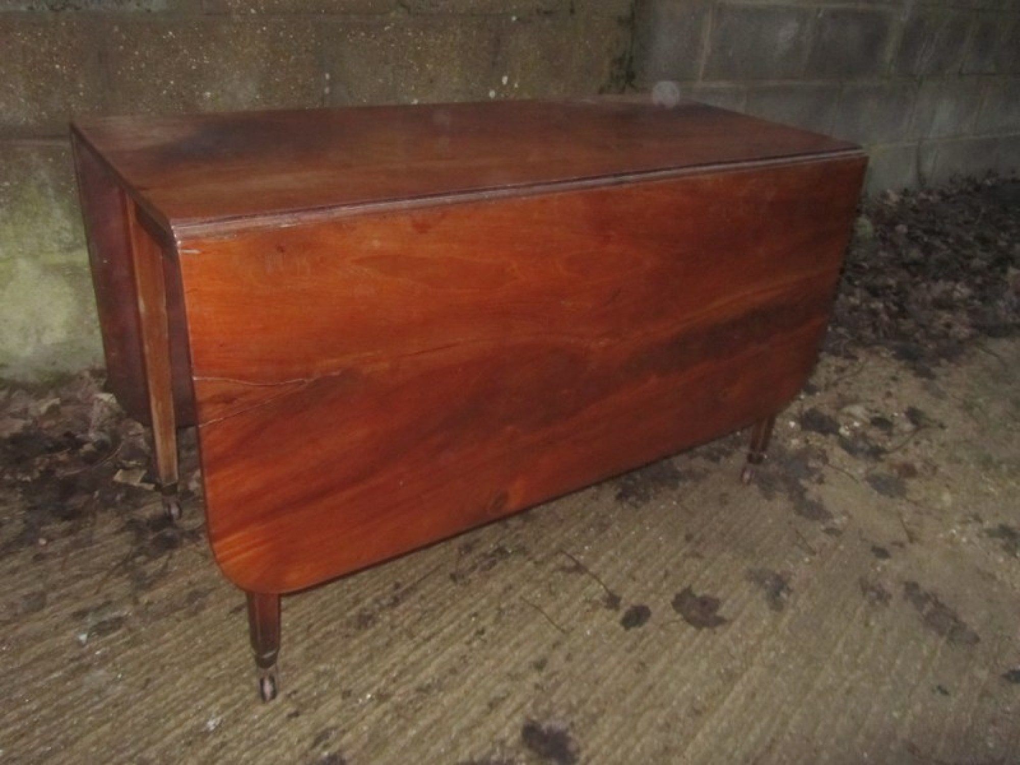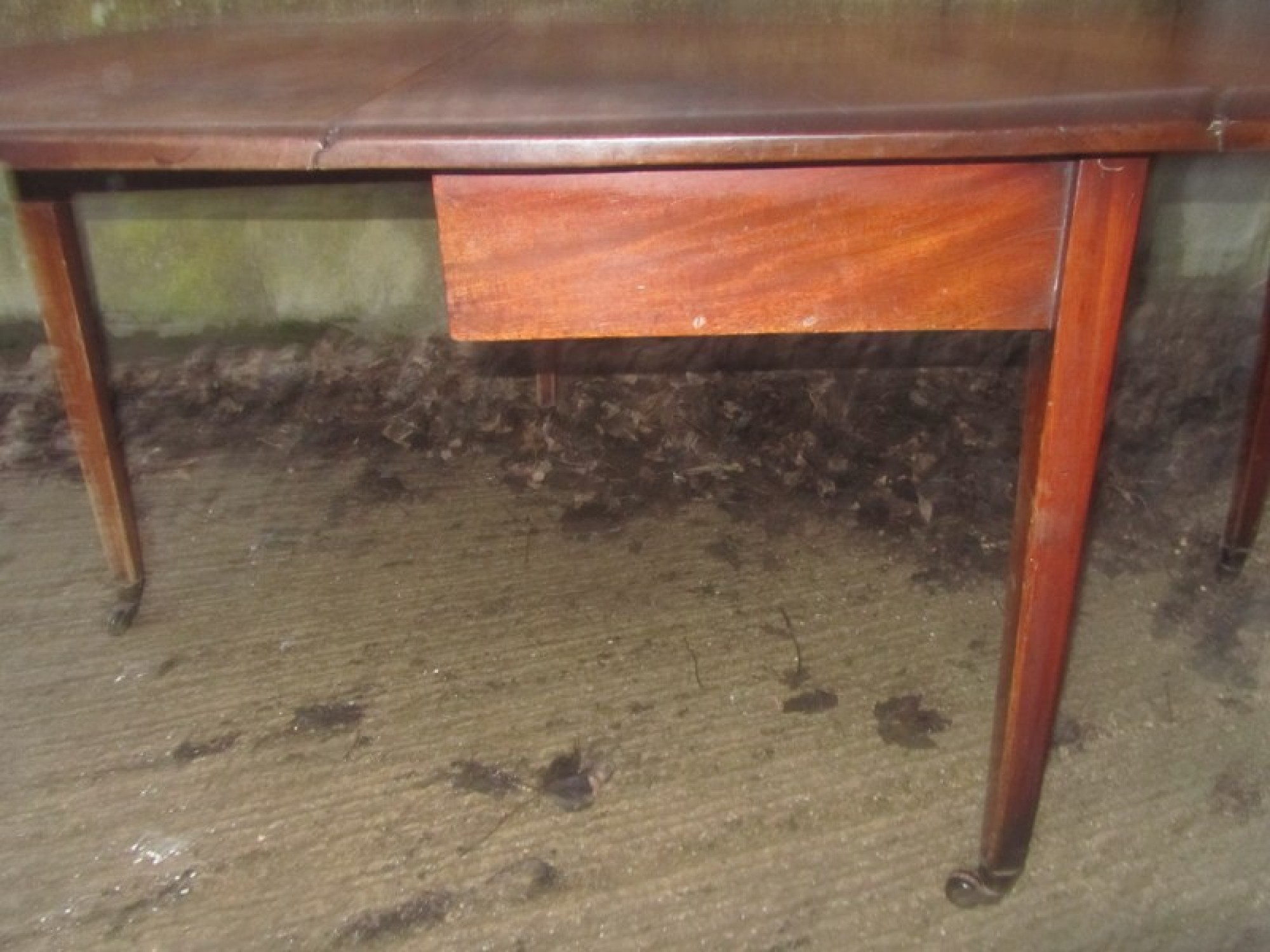 IT DATES FROM THE GEORGIAN PERIOD AND IS IN AVERAGE CONDITION. SOME WEAR. ORIGINAL PORCELAIN CASTORS.