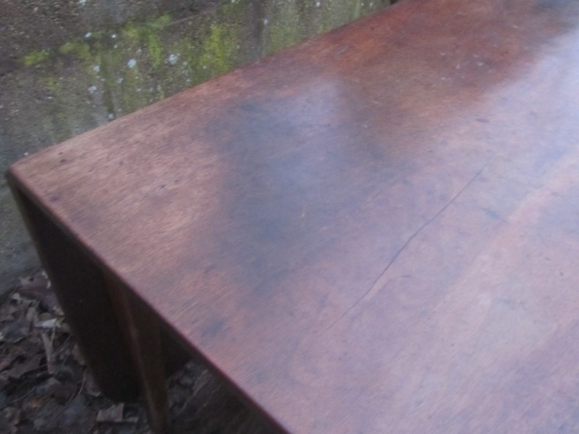 THIS IS A LARGE DROP LEAF TABLE, IT IS SOLID MAHOGANY. IT HAS A STURDY FRAME, THE LEGS PULL OUT TO SUPPORT THE TABLE TOP. IT WILL SEAT 4-6 DINERS.