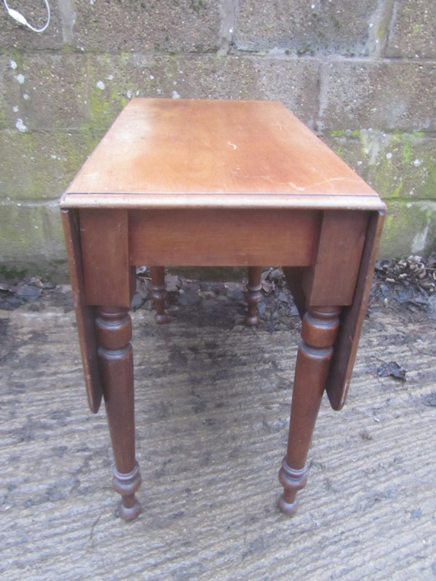 THIS IS A DROP LEAF TABLE, IT IS SOLID MAHOGANY. IT HAS A STURDY FRAME, THE LEGS PULL OUT TO SUPPORT THE TABLE TOP. IT WILL SEAT 2-4 DINERS.