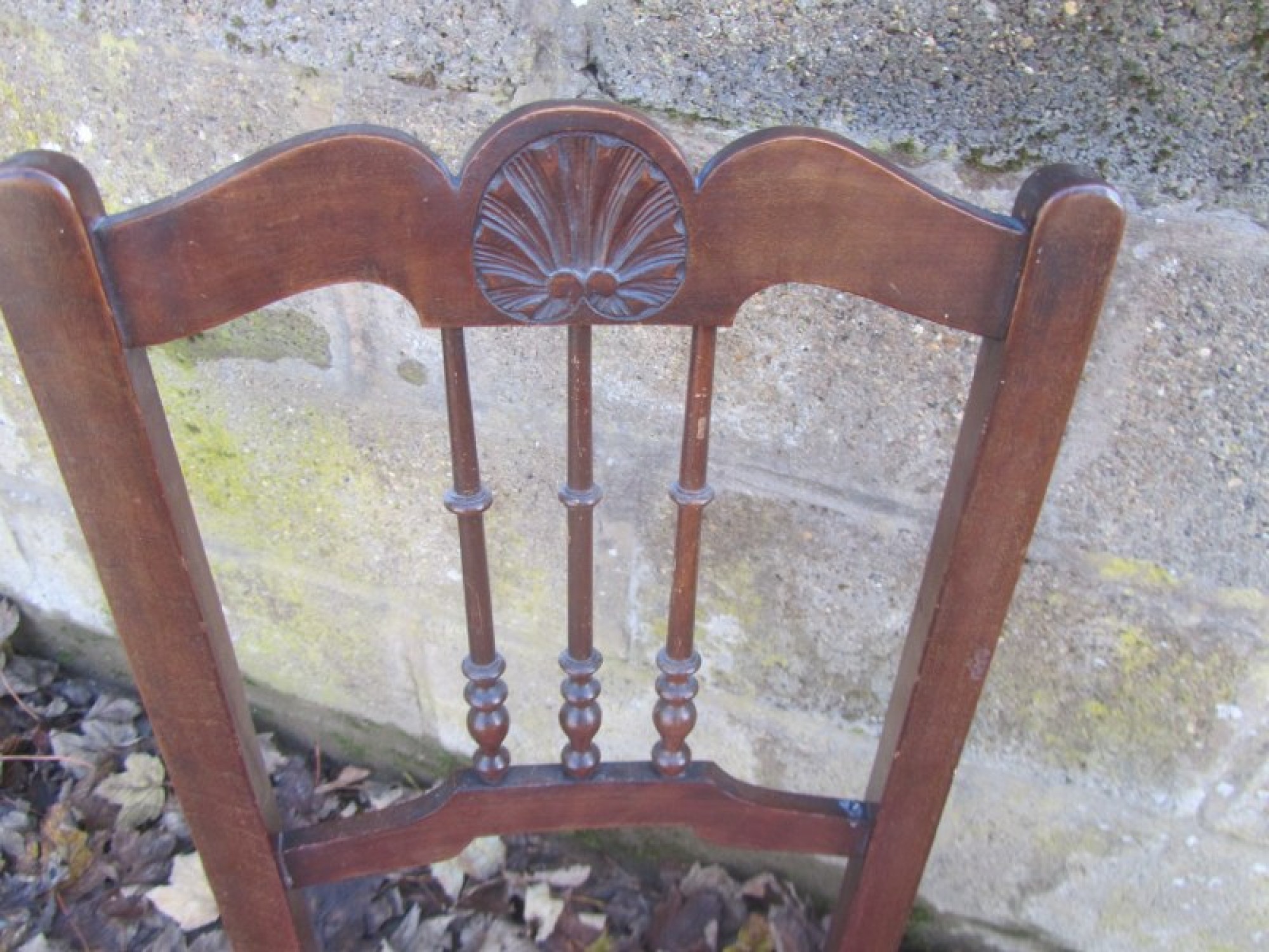 A BEDROOM CHAIR FROM AROUND THE 1900s. THERE IS a DECORATIVE BACK REST. HEIGHT TO SEAT IS 44cm. THE SEATS MATERIAL, EASY TO RECOVER.
