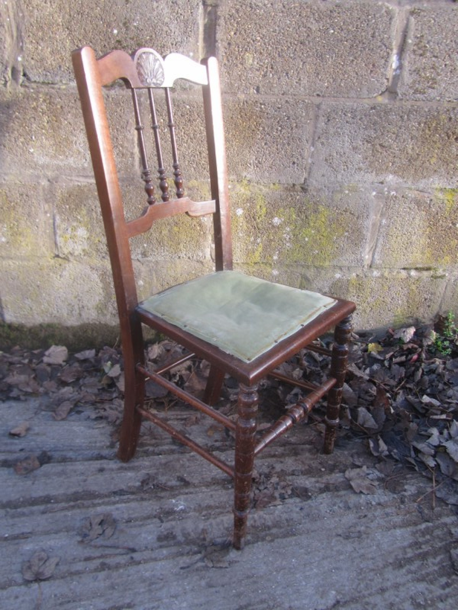 A BEDROOM CHAIR FROM AROUND THE 1900s. THERE IS a DECORATIVE BACK REST. HEIGHT TO SEAT IS 44cm. THE SEATS MATERIAL, EASY TO RECOVER.