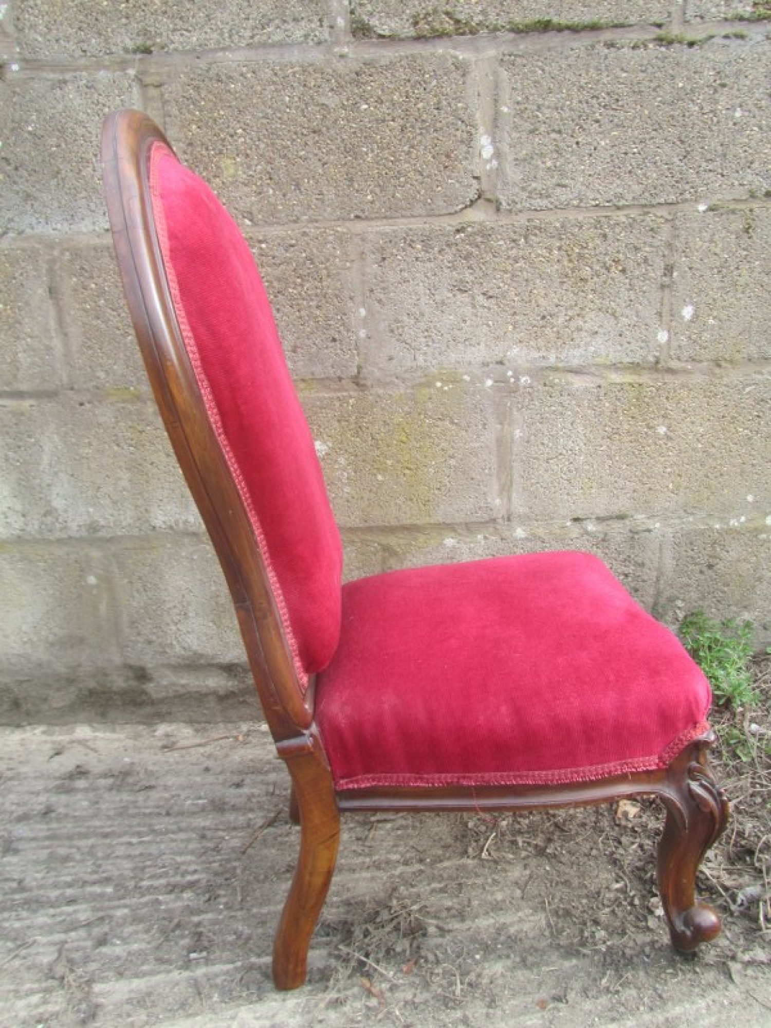 THIS IS A LOW NURSING CHAIR. IT DATES FROM AROUND THE 1880s. THERE IS DECORATIVE DETAIL ON THE LEGS. THE FRAME IS FAIRLY STURDY. IN GOOD CONDITION. IDEAL FOR ANYWHERE IN THE HOME. MINOR WEAR AND TEAR. HEIGHT TO SEAT IS 37cm.
