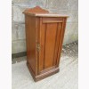AN ANTIQUE BEDSIDE CABINET WITH A SINGLE DOOR, SATINWOOD. SOME WATER MARKS ON THE TOP, THE TOP IS SPLIT.