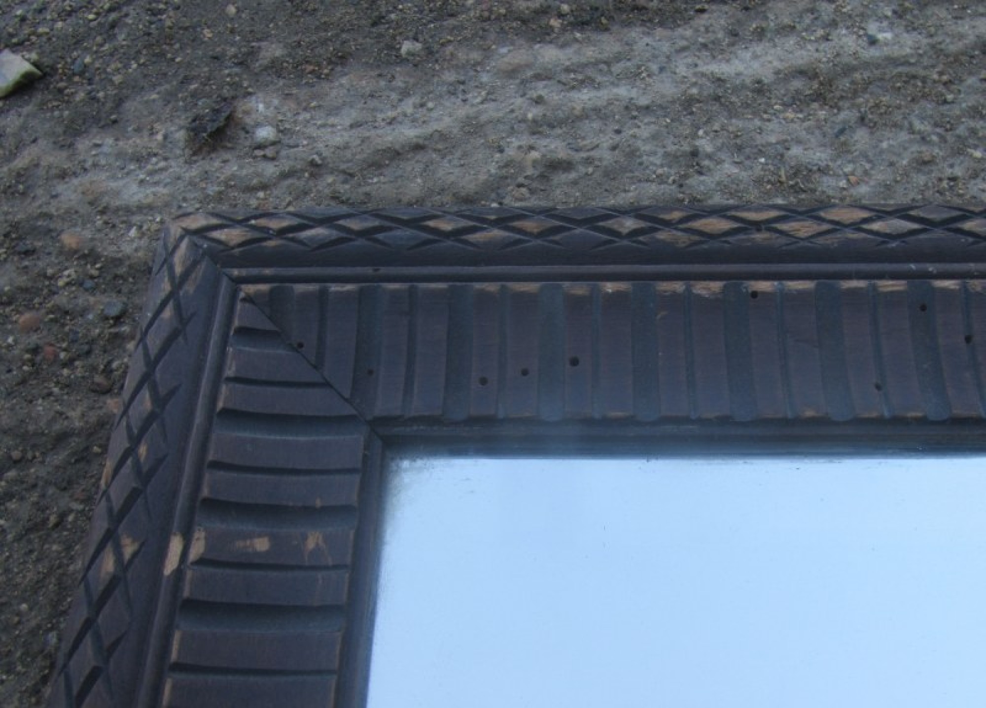 A WALNUT FRAMED MIRROR FROM THE EARLY 20th CENTURY. SOME OLD WOOD WORM, PROBABLY DEAD BUT WORTH TREATING TO BE SURE.