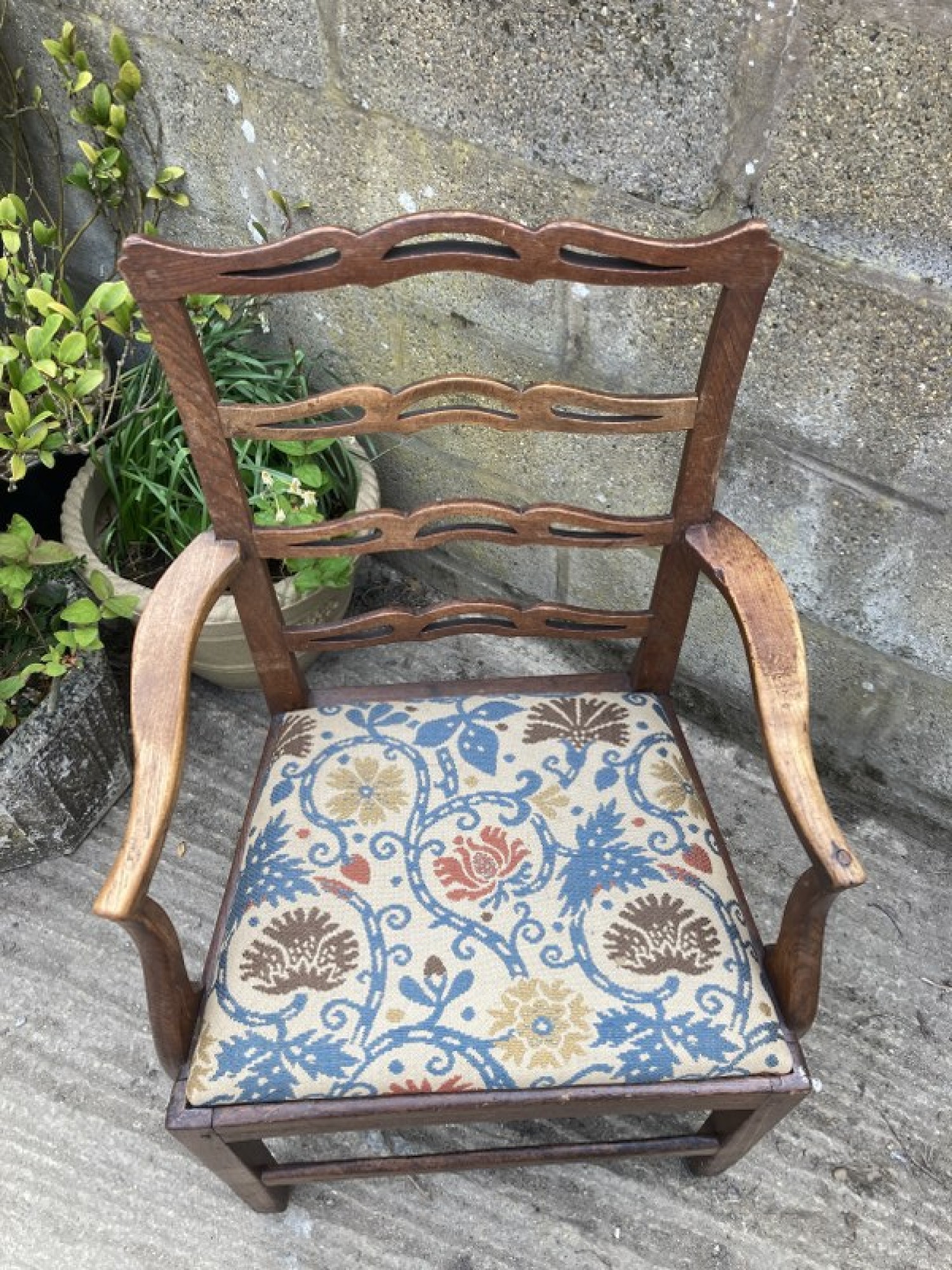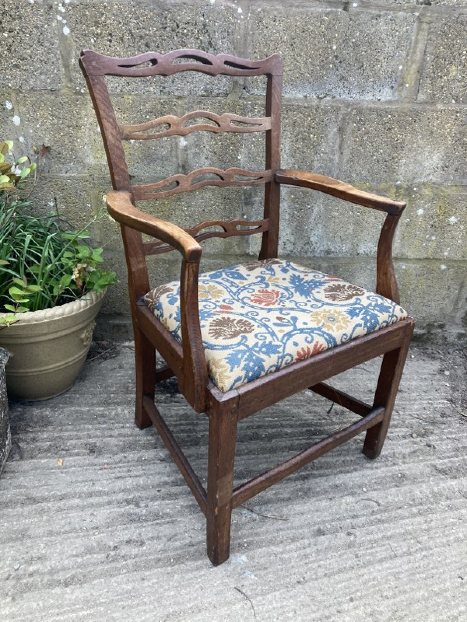 Items for Sale ANTIQUE OAK ARMCHAIR / CARVER DINING CHAIR - VINTAGE Share: View Larger Image View Larger Image View Larger Image View Larger Image View Larger Image Select to enlarge Swipe £ 65 THIS IS A STUNNING OAK CHAIR FROM THE EARLY 19th CENTURY. SOLID OAK FRAME. THERE IS A CRACK IN THE FRAME ON THE BACK CORNER. THE SEAT'S UPHOLSTERED IN FLORAL MATERIAL. SEAT HEIGHT -42cm, ARM REST HEIGHT IS 67cm. ADDITIONAL DETAILS RESERVE ITEM Condition:AVERAGE Manufacture Date:1820s Height:94 cms Length:57 cms Depth:59 cms Quantity:1 Item Number:41468 * Please complete all the fields below to send an enquiry about this product. Please reserve this item for me… Reset Send