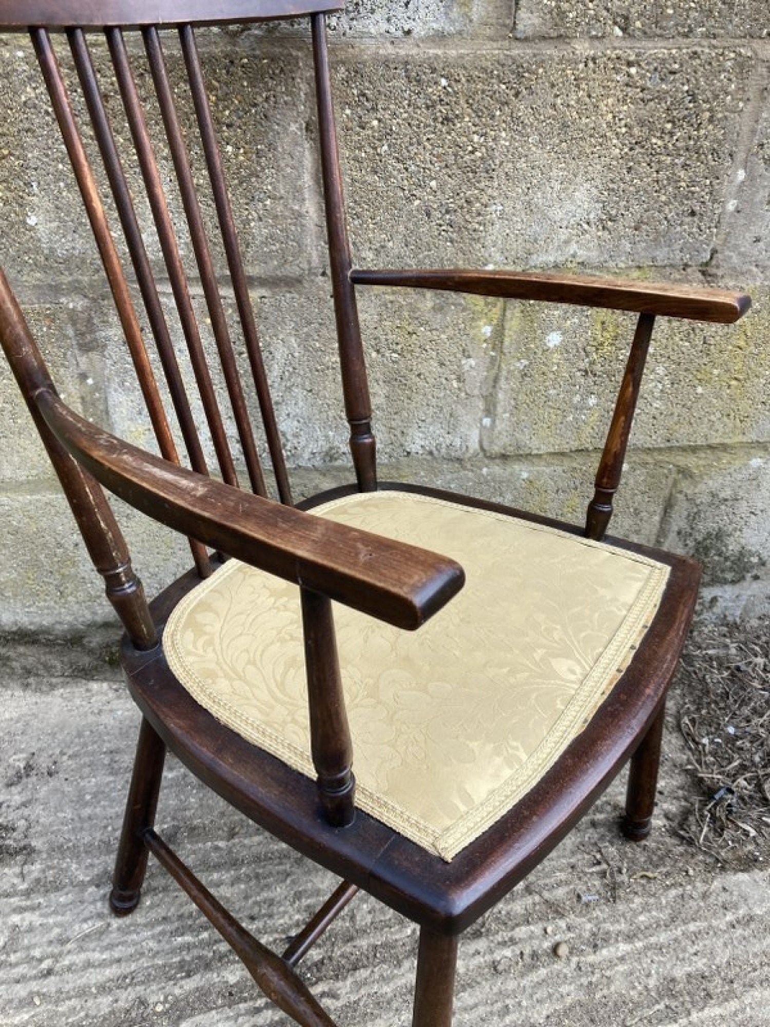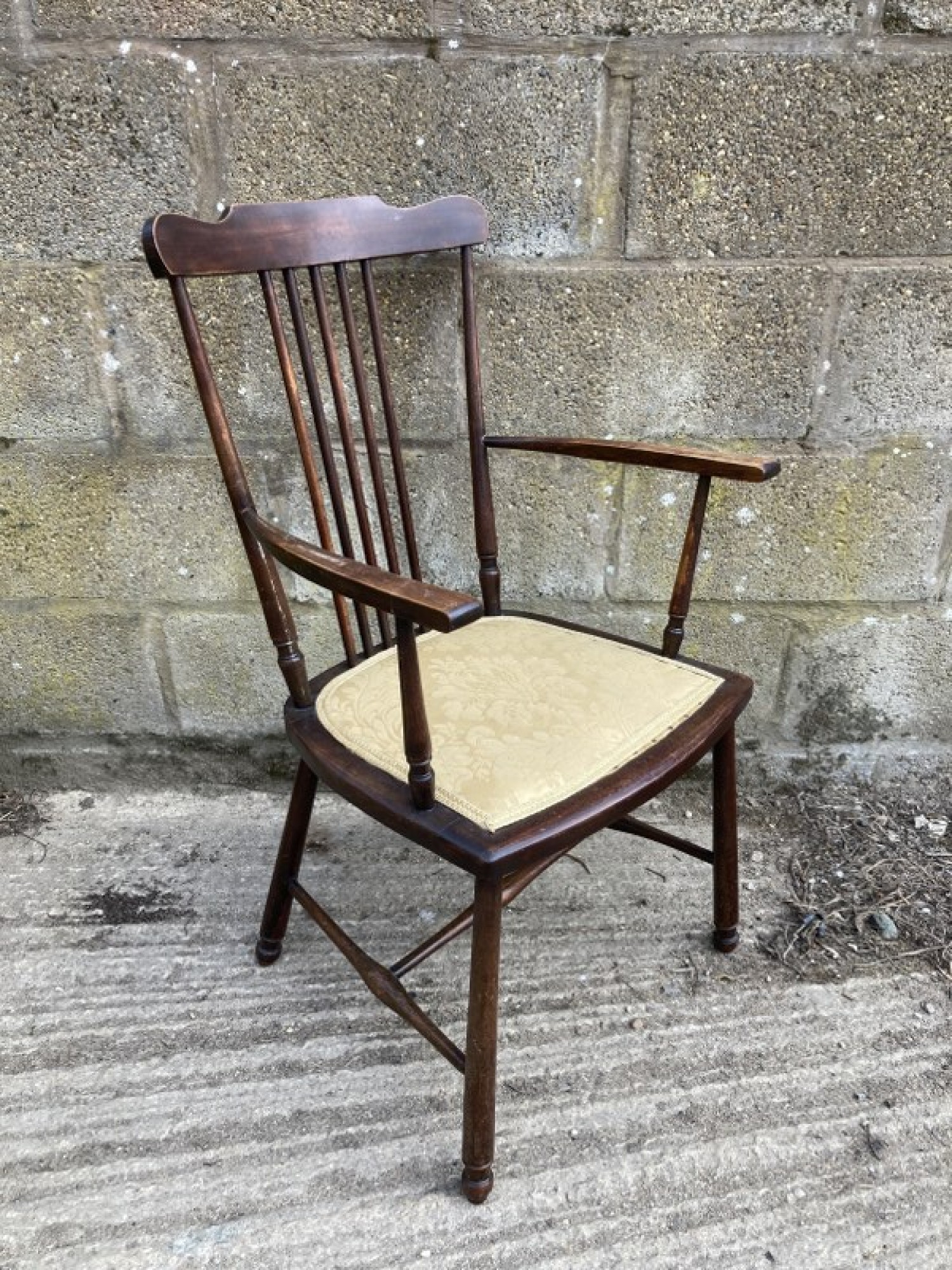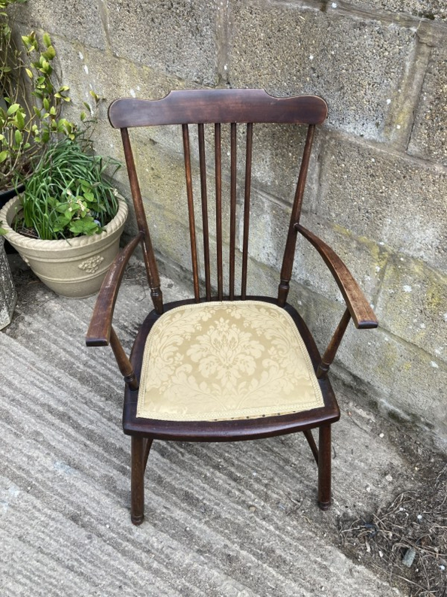 THIS IS A STUNNING WALNUT CHAIR FROM THE EARLY 20th CENTURY. SOLID BEECH FRAME. THE SEAT'S UPHOLSTERED IN MATERIAL.