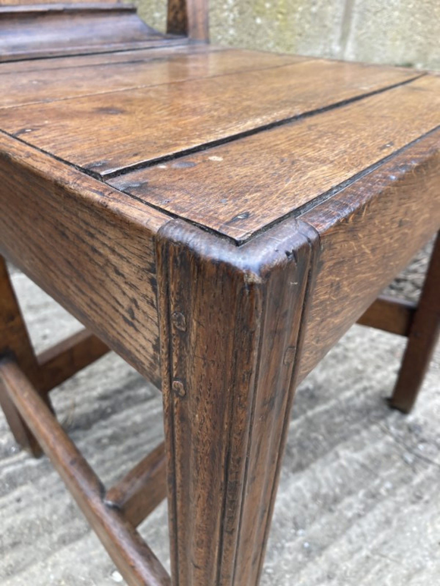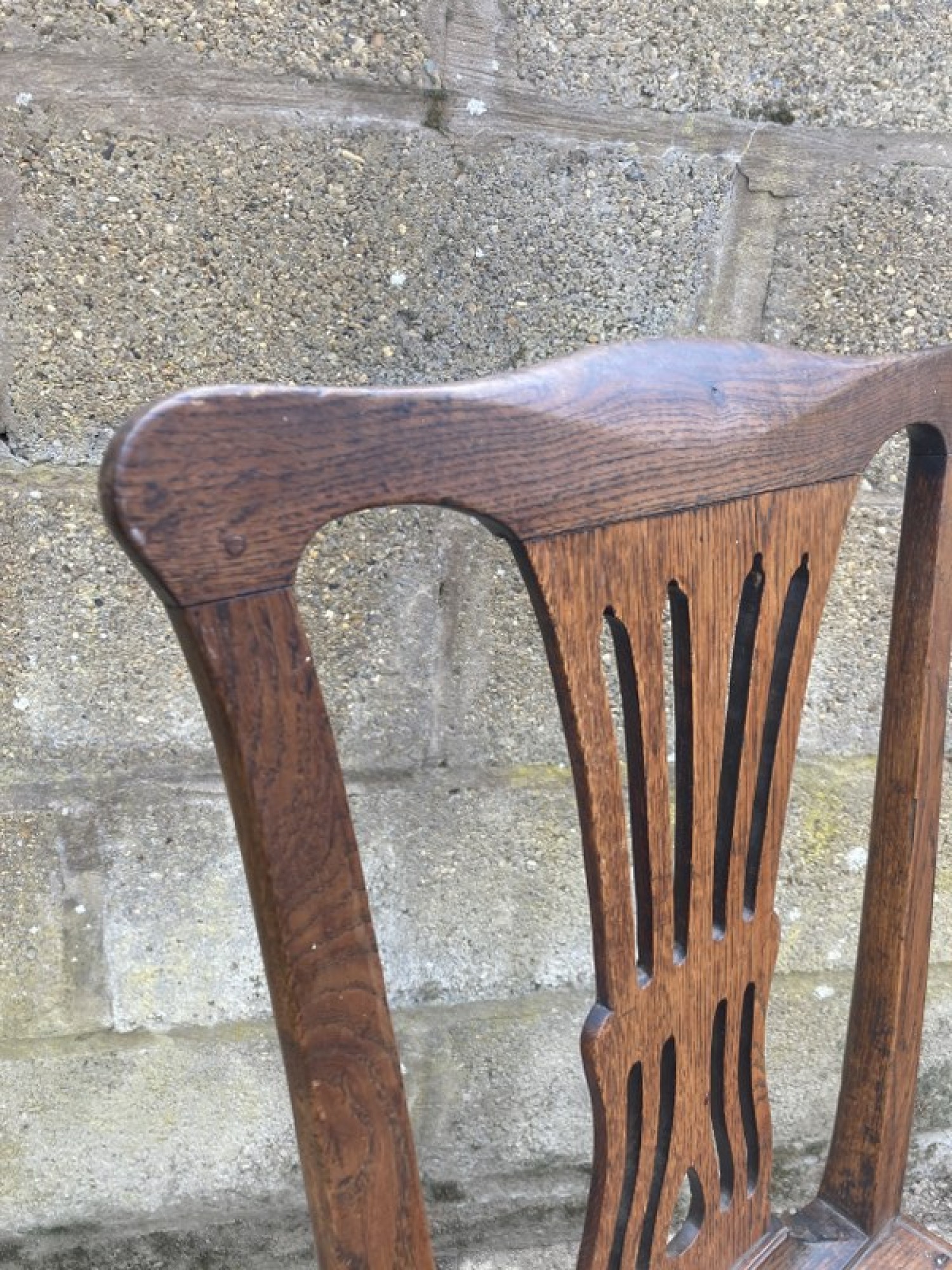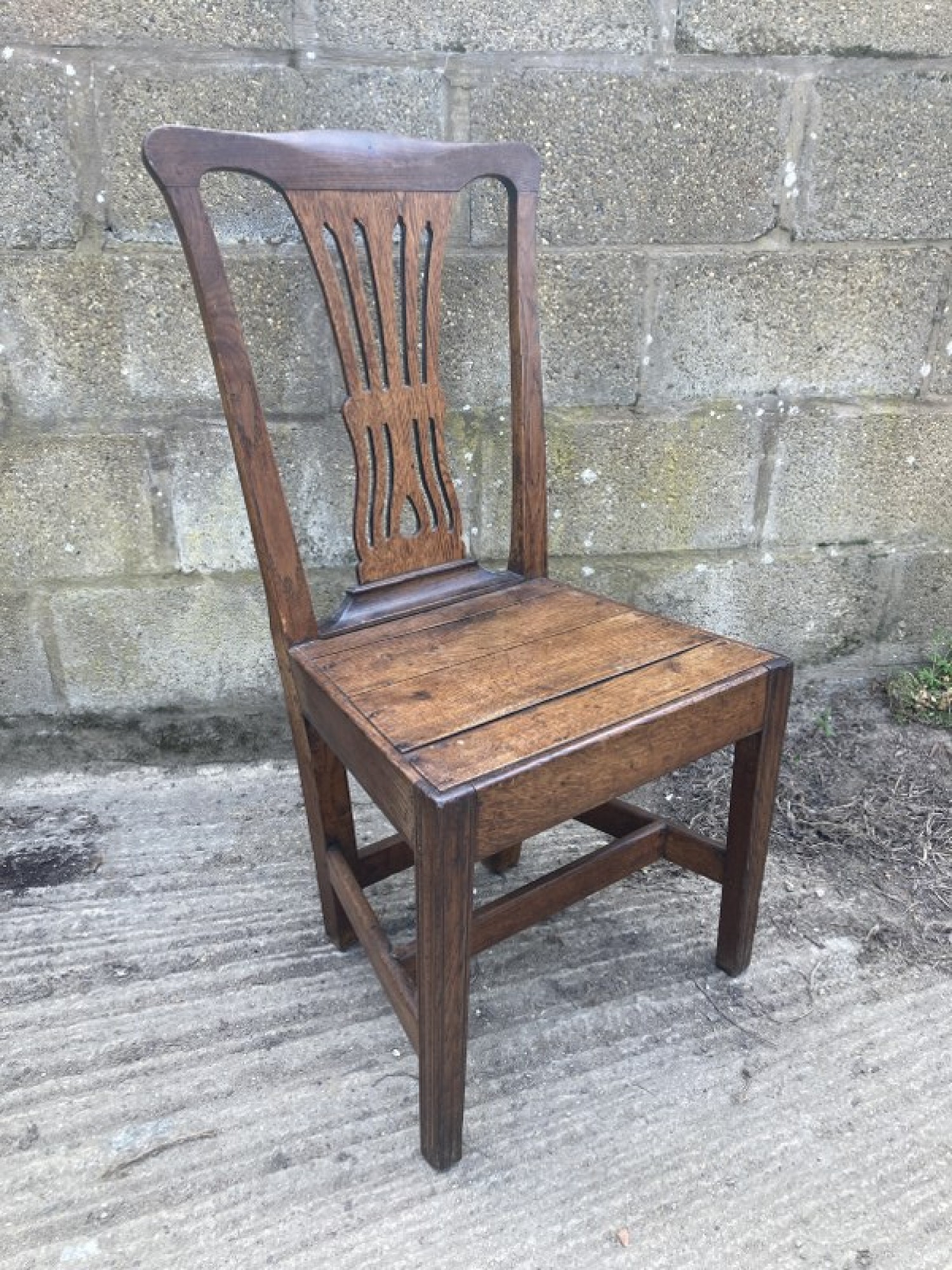 A STUNNING ANTIQUE OAK CHAIR. STRONG AND STURDY, PEGGED JOINTS, SOME OLD REPAIRS. AVERAGE CONDITION, AN ATTRACTIVE CHAIR. SEAT HEIGHT IS 43cm. DATES FROM THE 1800s, POSSIBLY EARLIER.