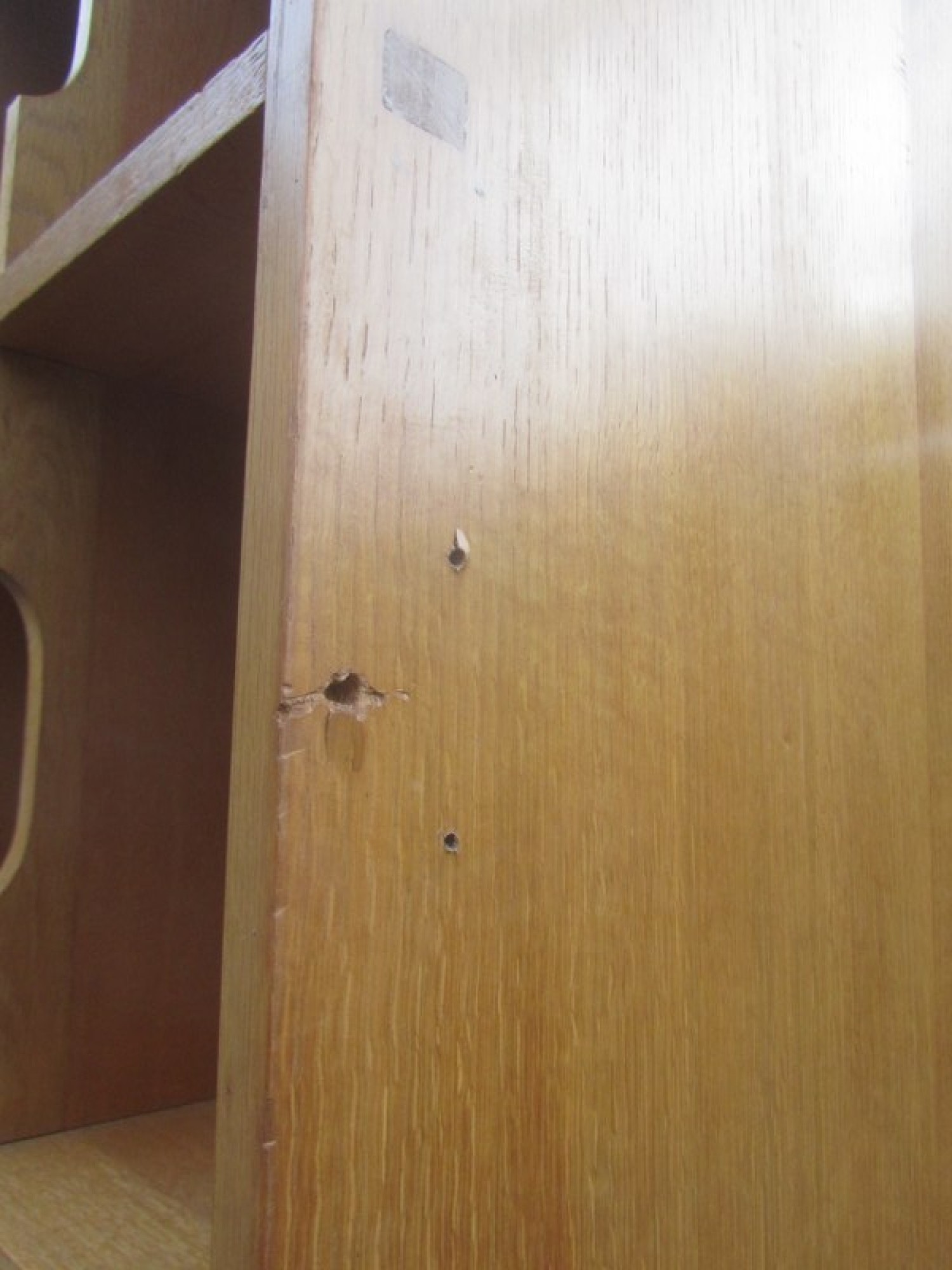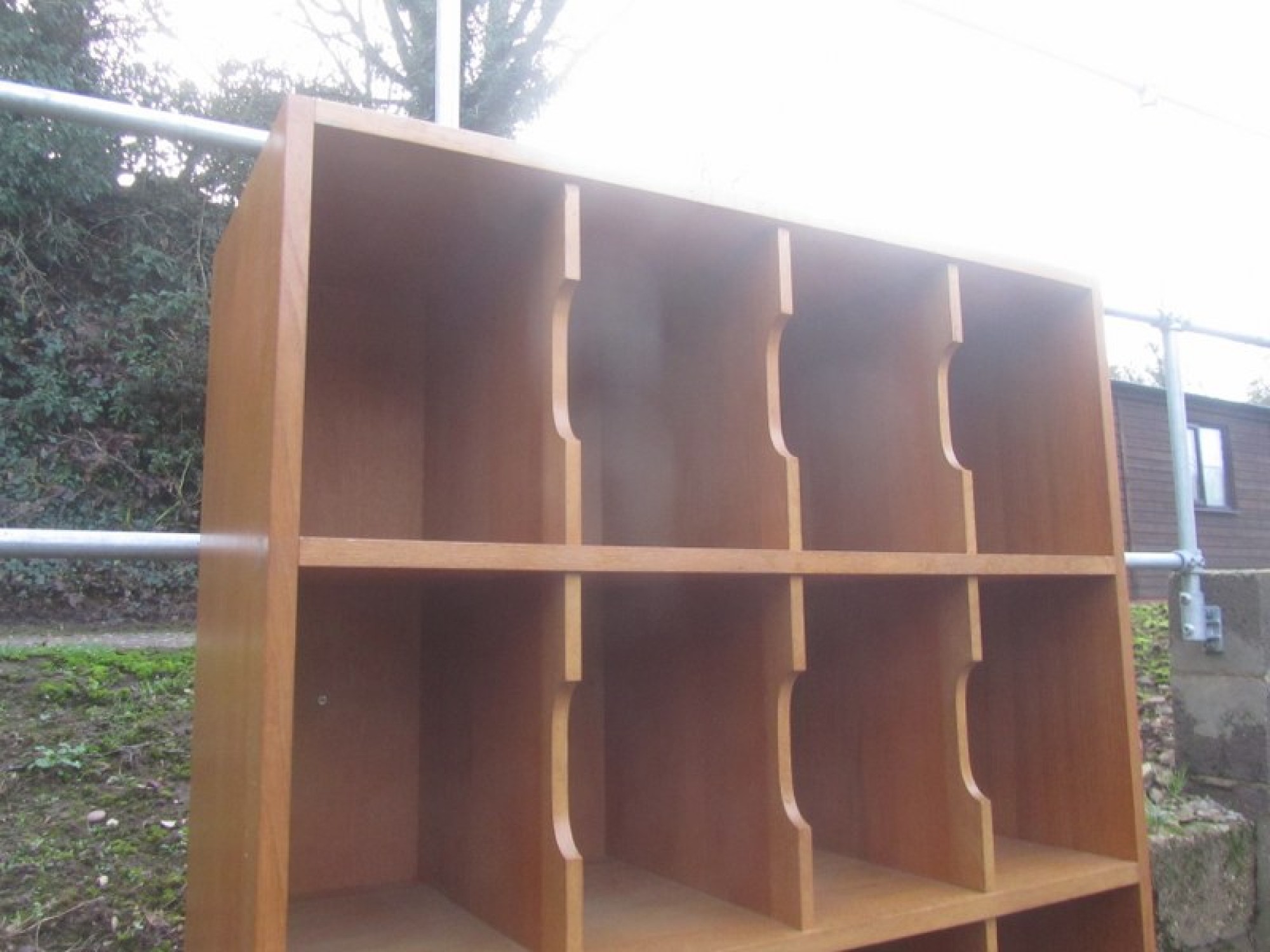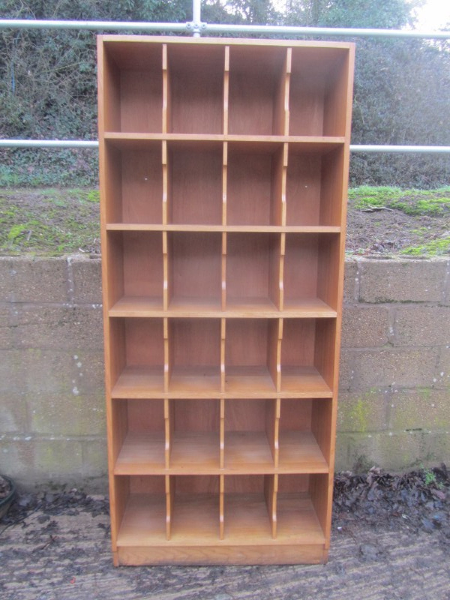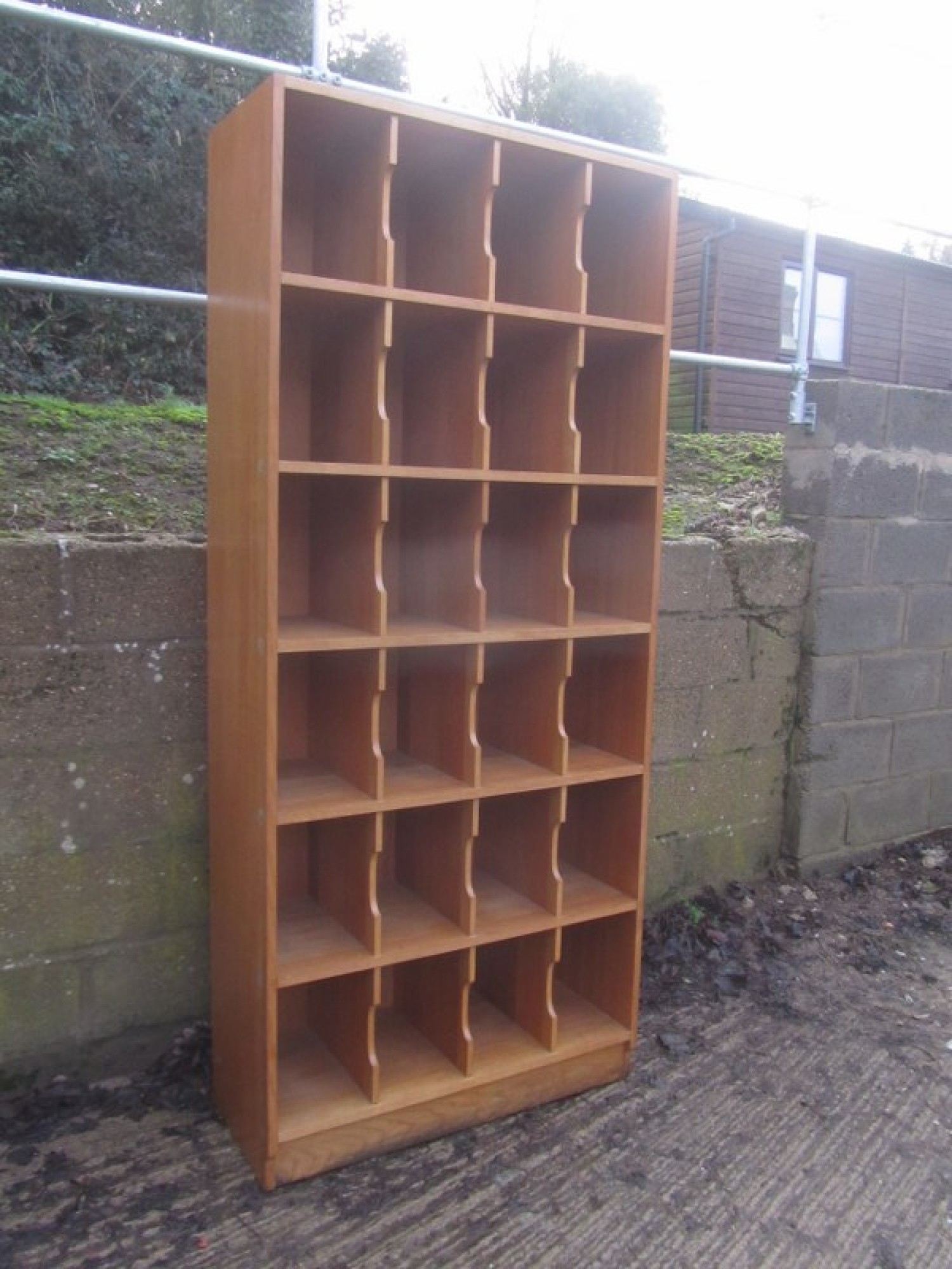 SHELVES MADE FROM SOLID OAK. A LARGE ANTIQUE SHELVING CABINET. FROM AN OFFICE, (POSSIBLY FROM THE LAND REGISTRY OFFICE). STRONG AND STURDY. SOME SCREW HOLES IN THE SIDES. GENERAL WEAR.