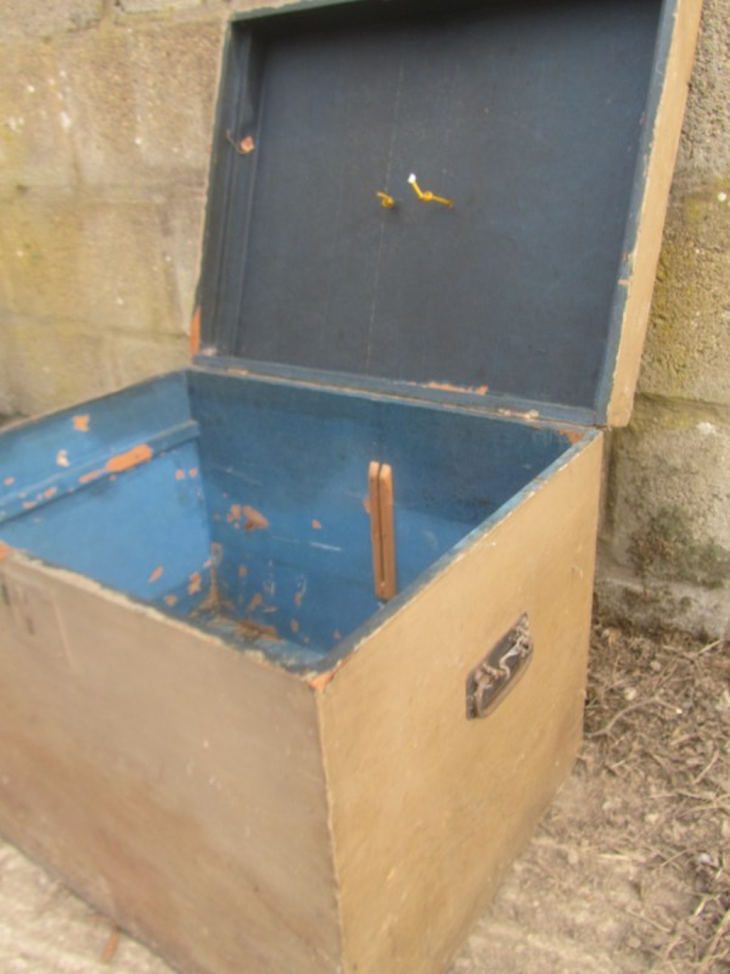 THESE ARE GREAT FOR STORING CLOTHES / BLANKETS, THEY ALSO MAKE GREAT TOY BOXES OR COFFEE TABLES etc. THIS LOOKS OK AS IT IS, BUT COULD EASILY BE STRIPPED OR PAINTED. PLEASE SEEK ADVICE BEFORE STRIPPING OLD PAINT AND USE THE CORRECT SAFETY EQUIPMENT. IT WOULD LOOK GREAT PAINTED IN A CONTEMPORY COLOUR TO GIVE IT A STYLISH NEW LOOK.
