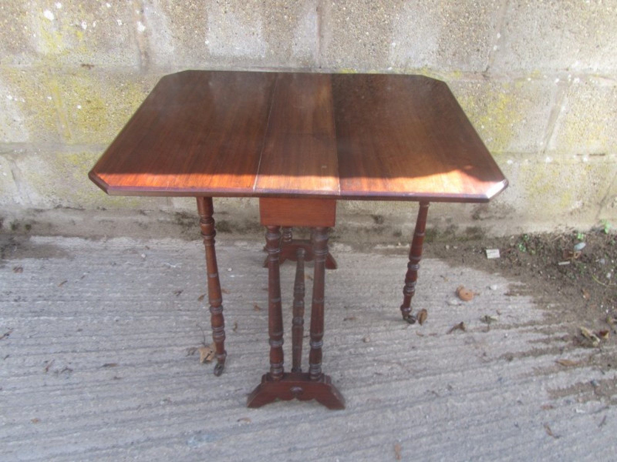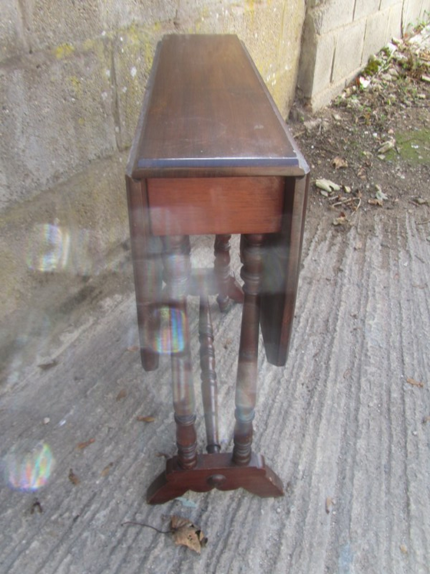THIS IS AN ELEGANT VICTORIAN MAHOGANY SUTHERLAND TABLE. THE FRAME IS FAIRLY STURDY. IN THE CLOSED POSITION IT IS VERY SLIM. IT STANDS ON TURNED LEGS.