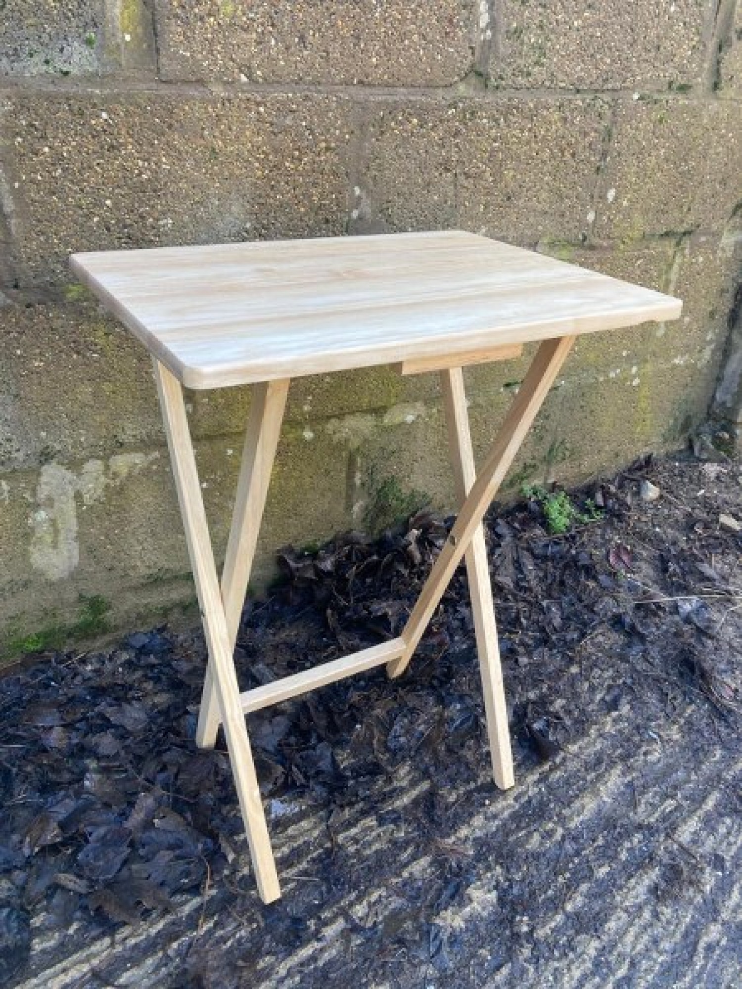 A SMALL TABLE IN SOLID BEECH WOOD. FOLDS FLAT FOR STORAGE. THIS LOOKS OK AS IT IS, BUT COULD EASILY BE STRIPPED OR PAINTED. PLEASE SEEK ADVICE BEFORE STRIPPING OLD PAINT AND USE THE CORRECT SAFETY EQUIPMENT. IT WOULD LOOK GREAT PAINTED IN A CONTEMPORY COLOUR TO GIVE IT A STYLISH NEW LOOK.
