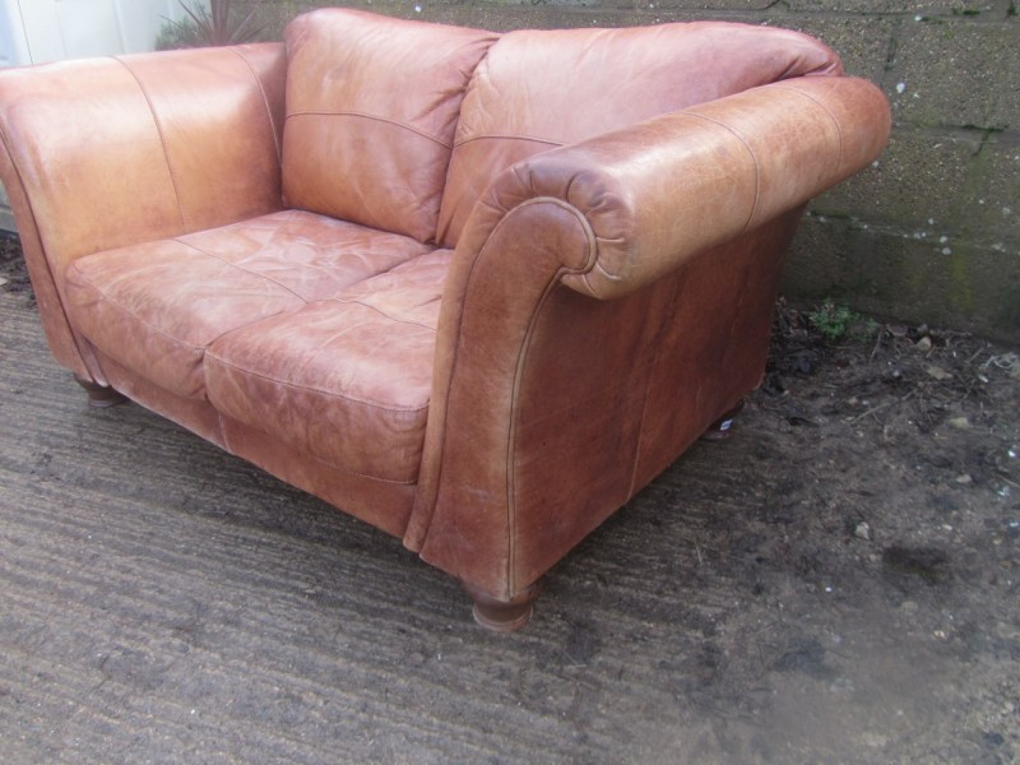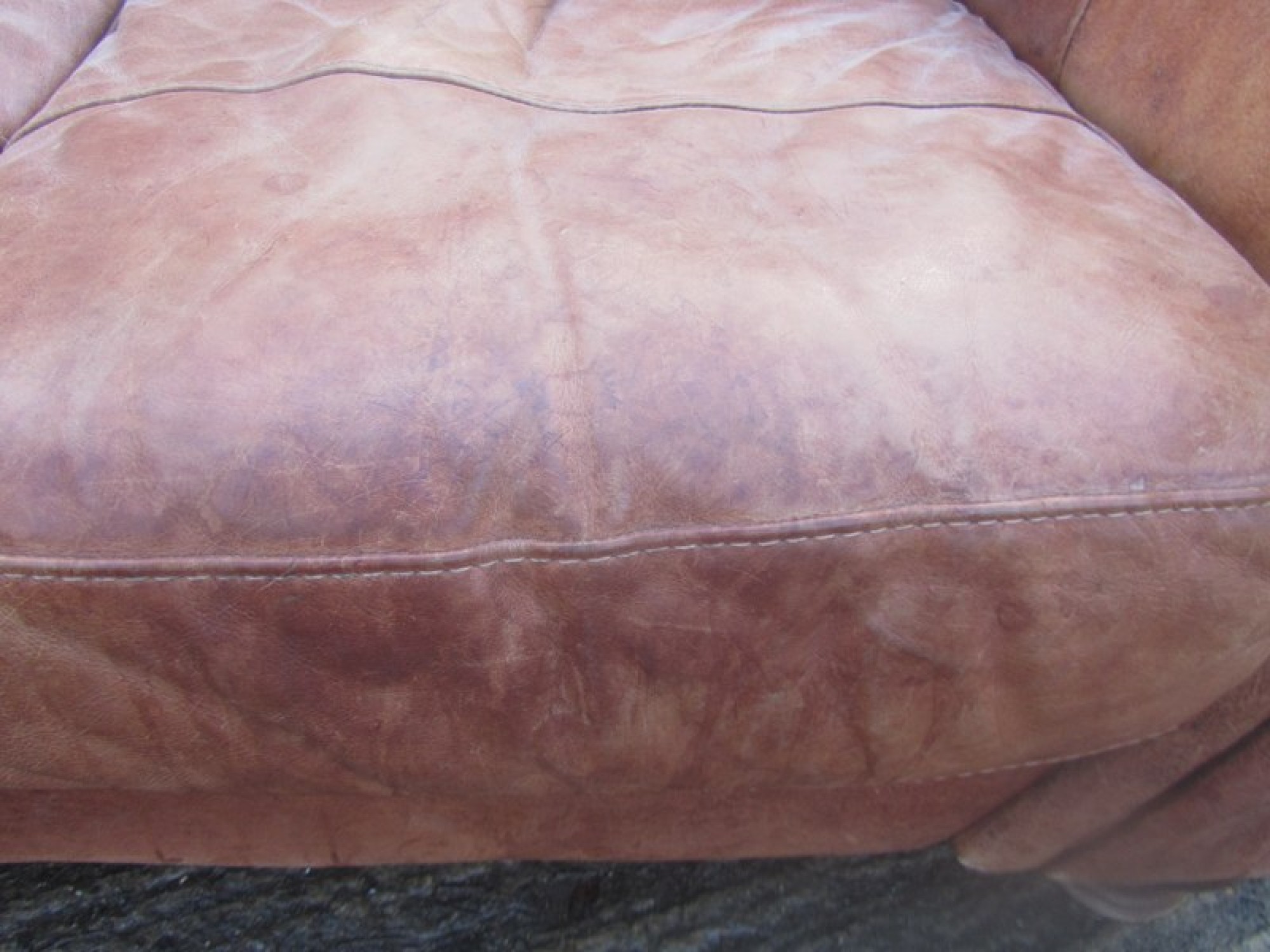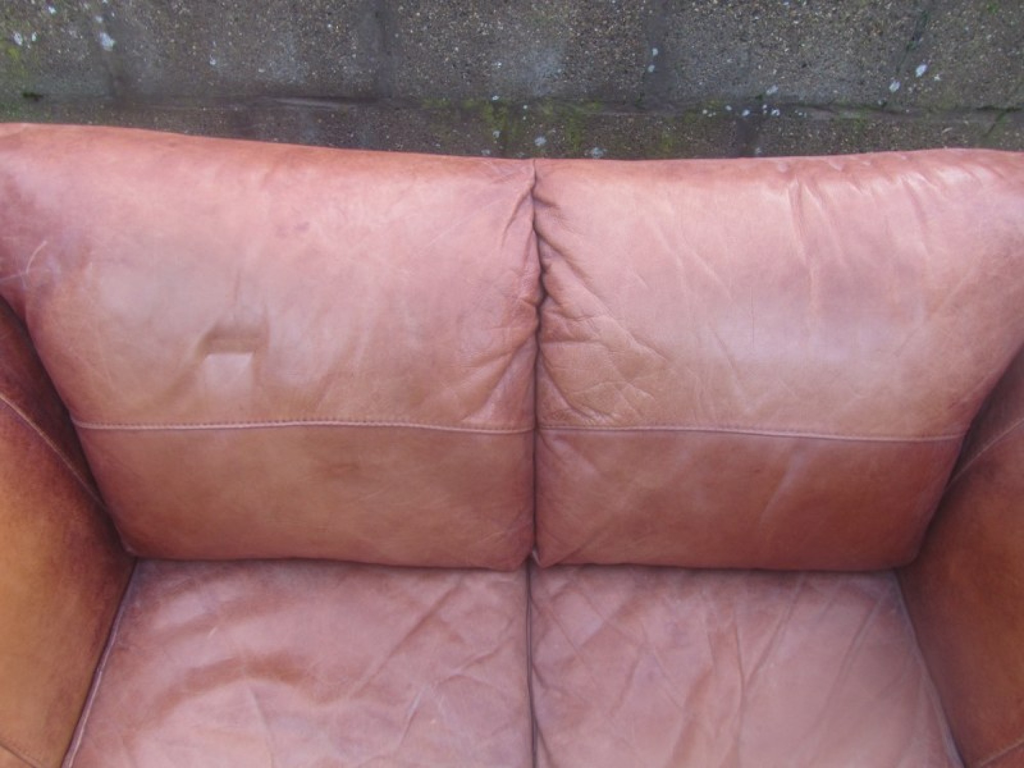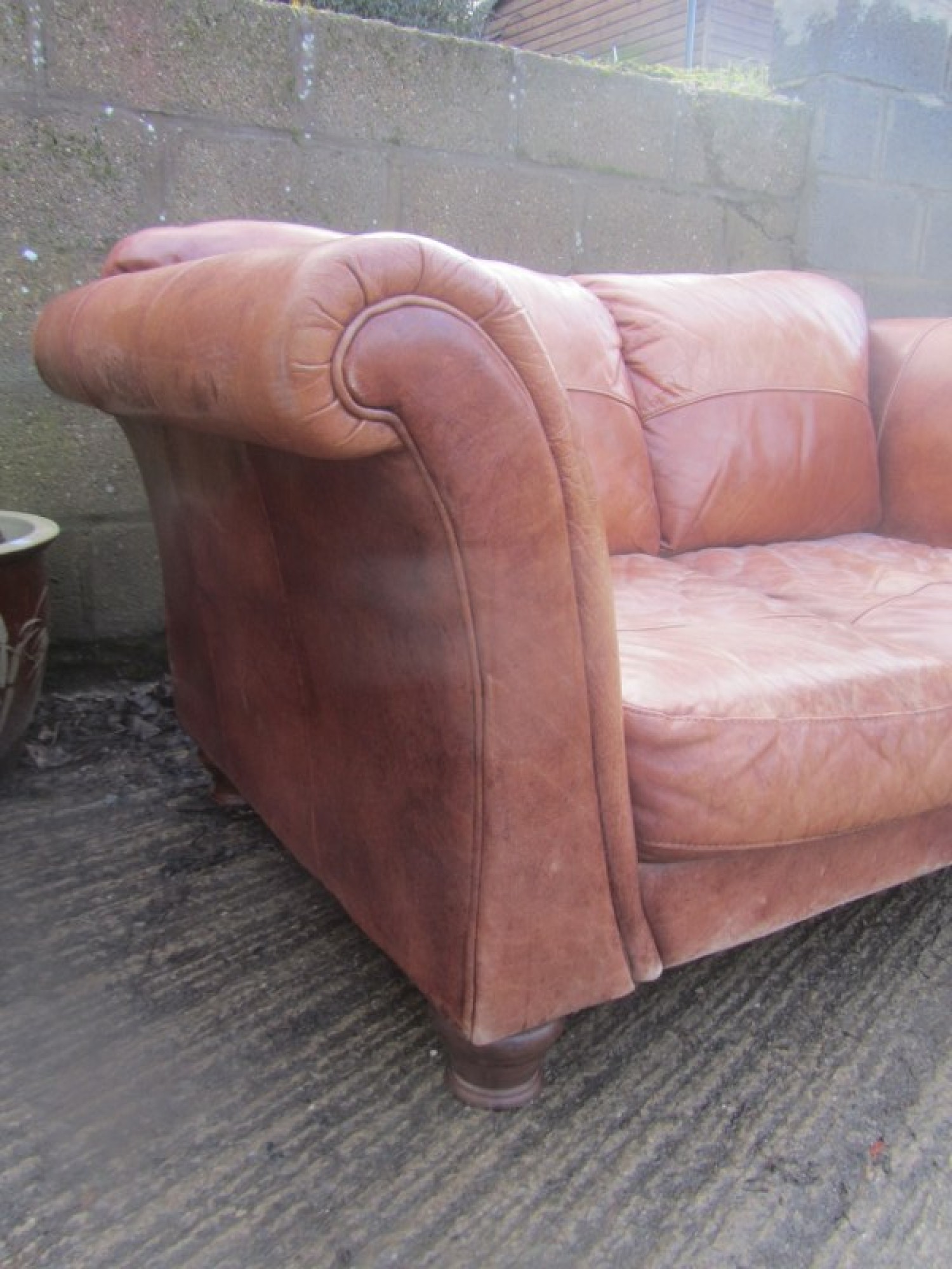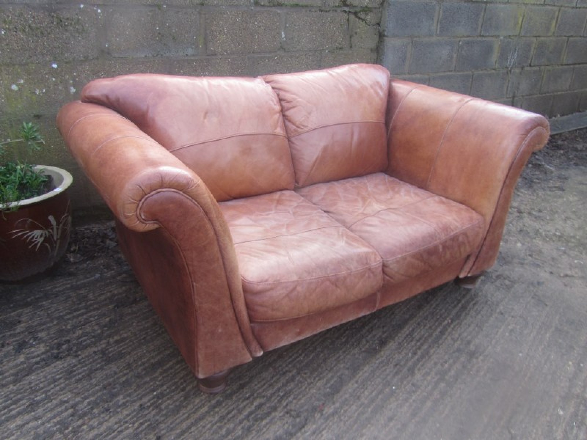 Items for Sale ANTIQUE STYLE BROWN REAL LEATHER 2 SEATER SOFA / SETTEE Share: View Larger Image View Larger Image View Larger Image View Larger Image View Larger Image View Larger Image View Larger Image Select to enlarge Swipe £ 85 - RESERVED A REPRODUCTION SOFA, PROBABLY 10-20 YEARS OLD. THE LEATHER IS IN WORN CONDITION, WEAR AND SCUFFS.THICK QUALITY LEATHER, DISTRESSED AND WORN. ON WOODEN LEGS, THE FRAME HAS SOME MOVEMENT IN IT, BUT STILL FUNCTIONAL. LOW SEAT HEIGHT, 35cm. ADDITIONAL DETAILS RESERVE ITEM Condition:WORN Manufacture Date:2010s Height:84 cms Length:167 cms Depth:92 cms Quantity:1 Item Number:41169 * Please complete all the fields below to send an enquiry about this product. Please reserve this item for me… Reset Send
