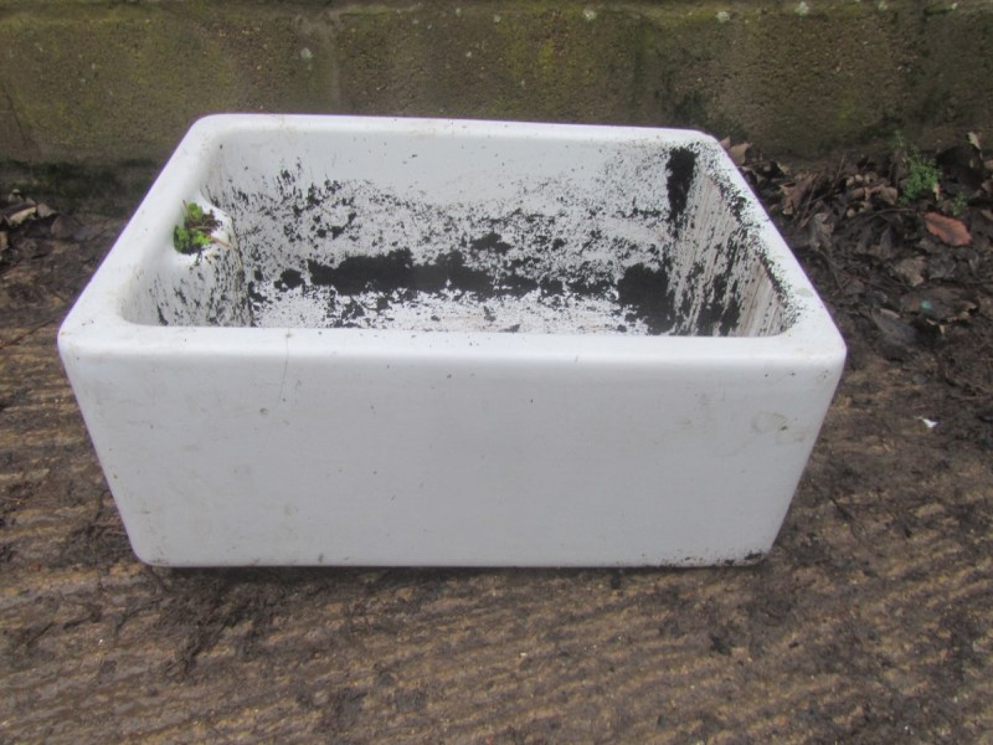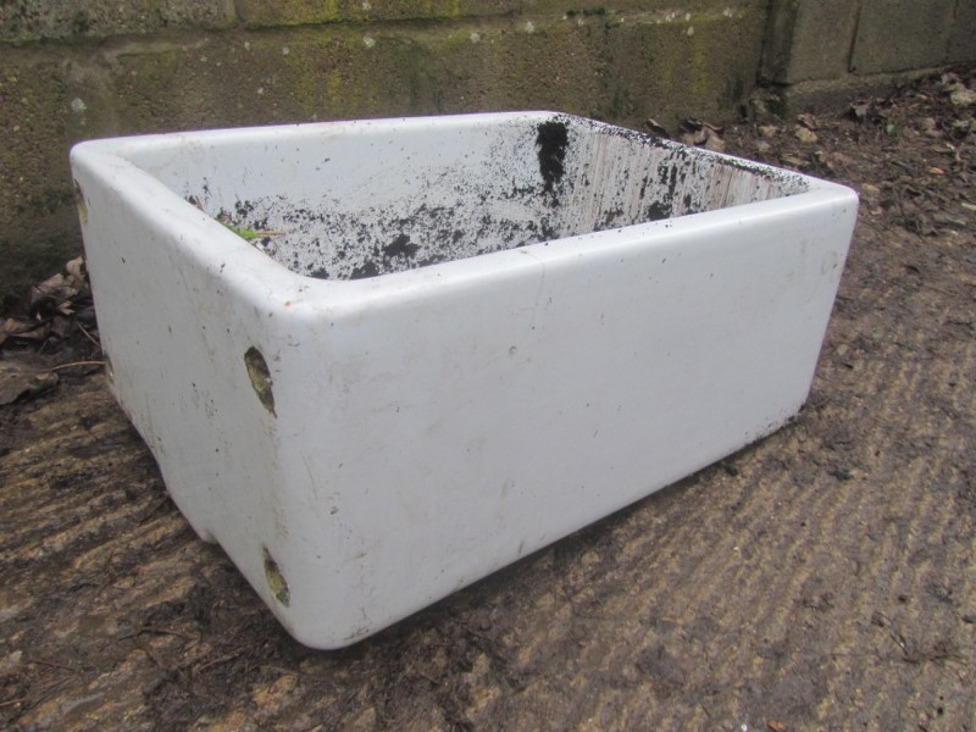THIS IS AN OLD BELFAST SINK. IT HAS SAT IN A GARDEN FOR YEARS, SOME WEAR. IT IS BEYOND USE AS A SINK IN A KITCHEN, BUT WOULD LOOK GREAT IN A GARDEN AS A PLANTER.