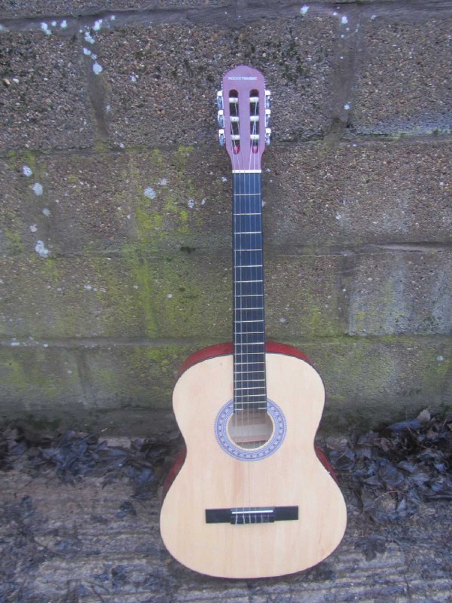 Items for Sale SMALL CLASSICAL ACCOUSTIC GUITAR Share: View Larger Image View Larger Image Select to enlarge £ 30 AN ACCOUSTIC GUITAR, MADE BY ROCKET MUSIC. ADDITIONAL DETAILS RESERVE ITEM Condition:GOOD Manufacture Date:2000s Height:102 cms Length:38 cms Depth:9 cms Quantity:1 Item Number:40837 * Please complete all the fields below to send an enquiry about this product. Please reserve this item for me… Reset Send