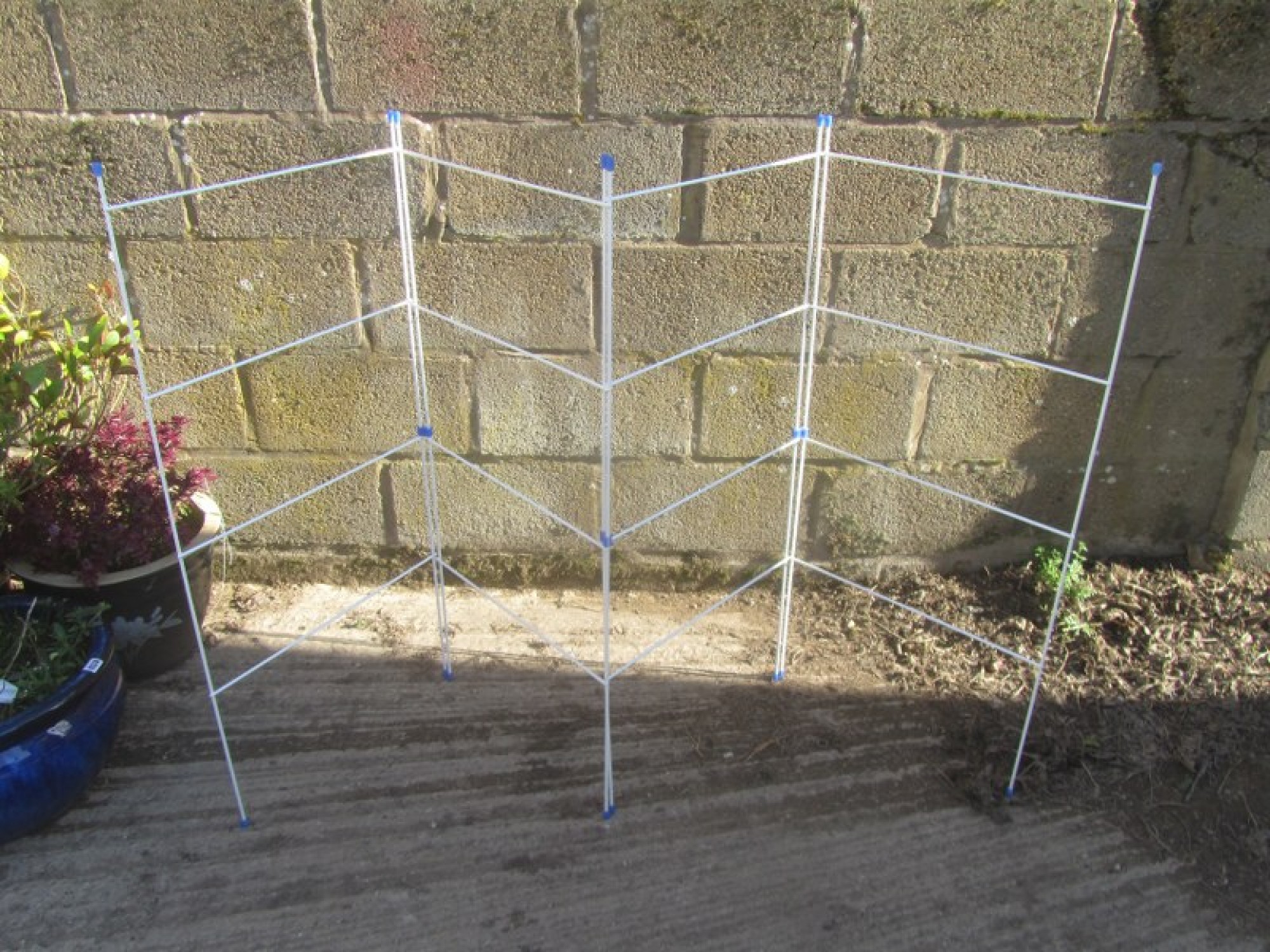 A MODERN METAL CLOTHES AIRER, GREAT FOR DRYING CLOTHES. FOLDS FLAT FOR EASY STORAGE.