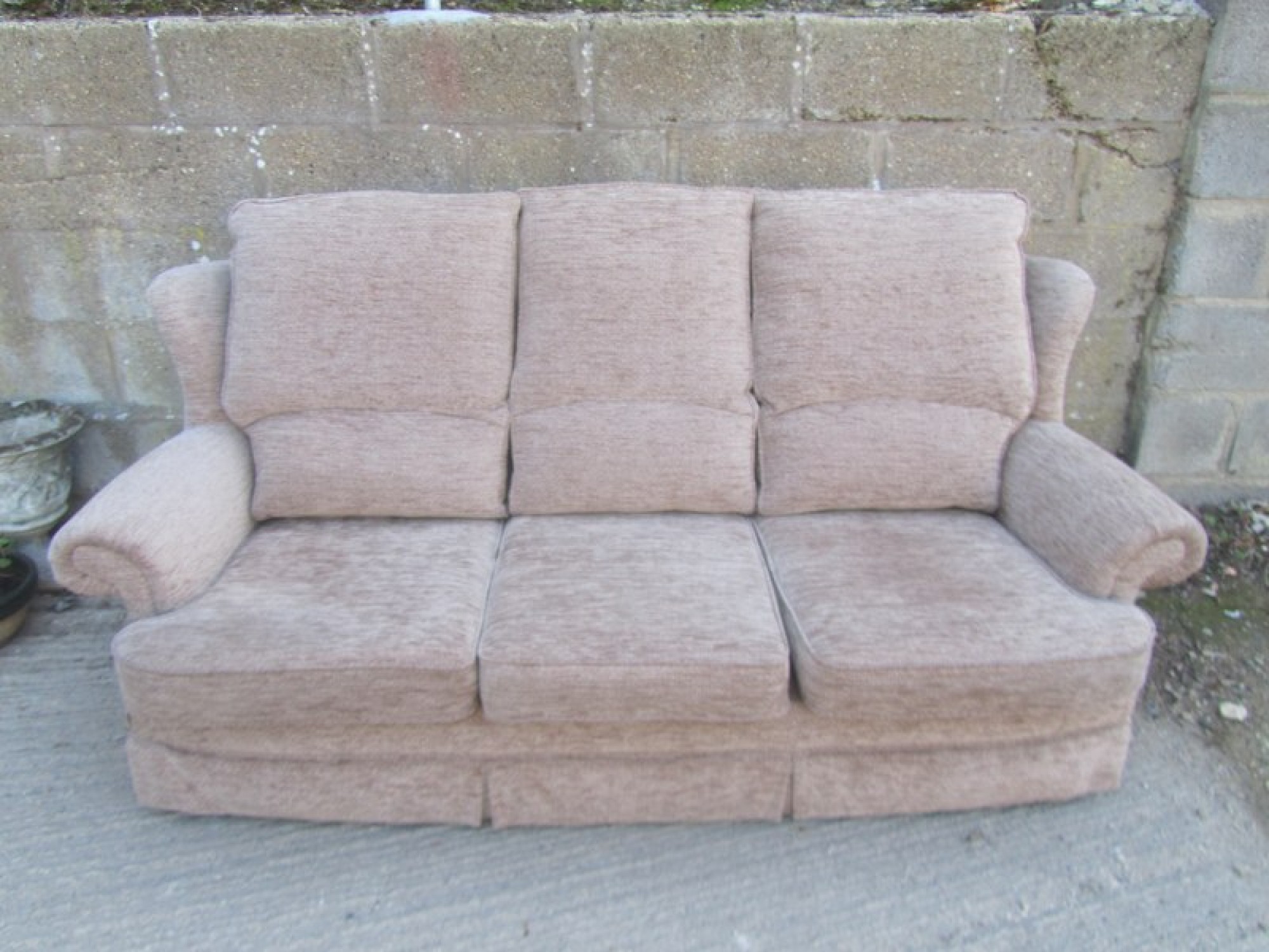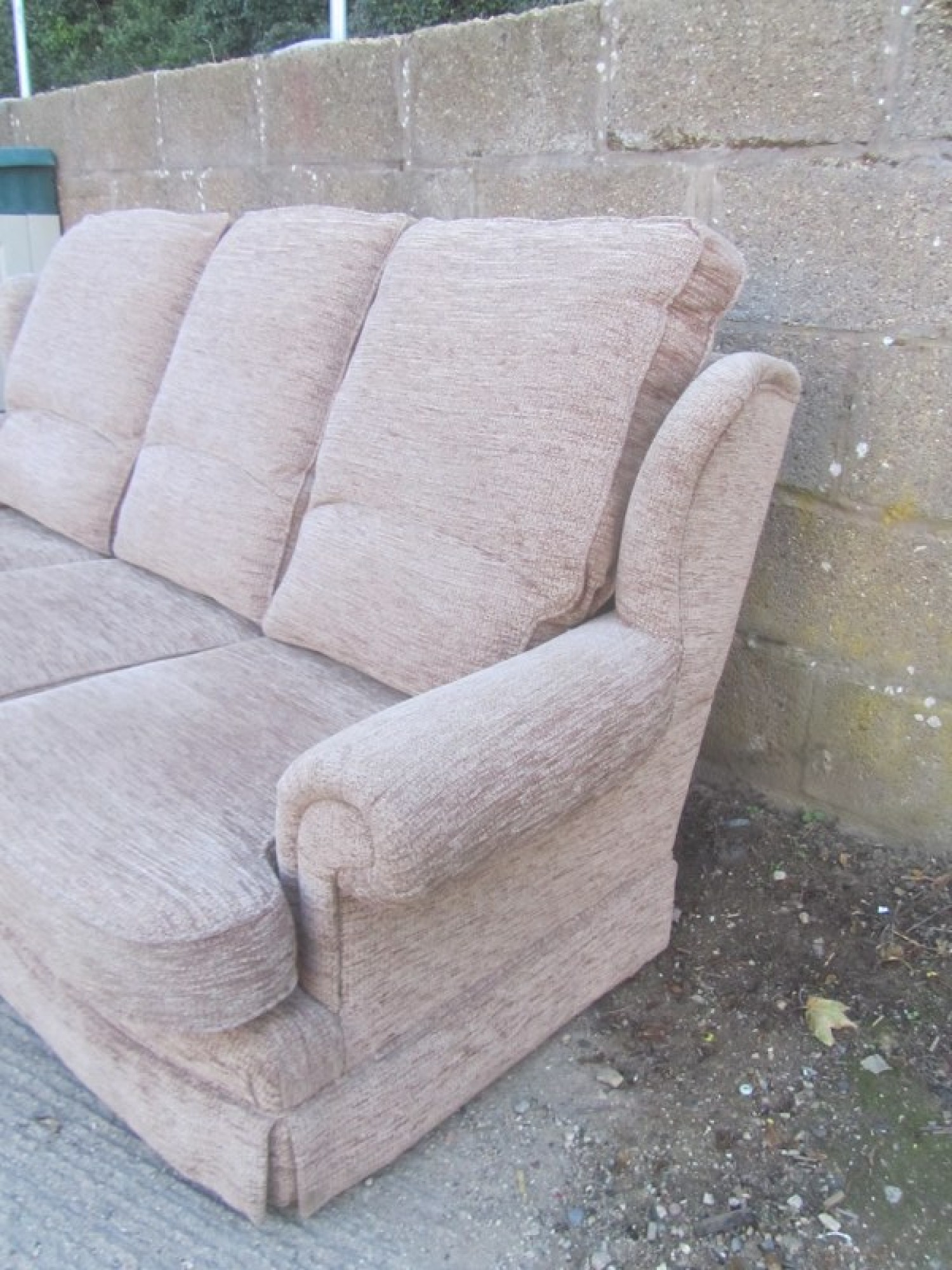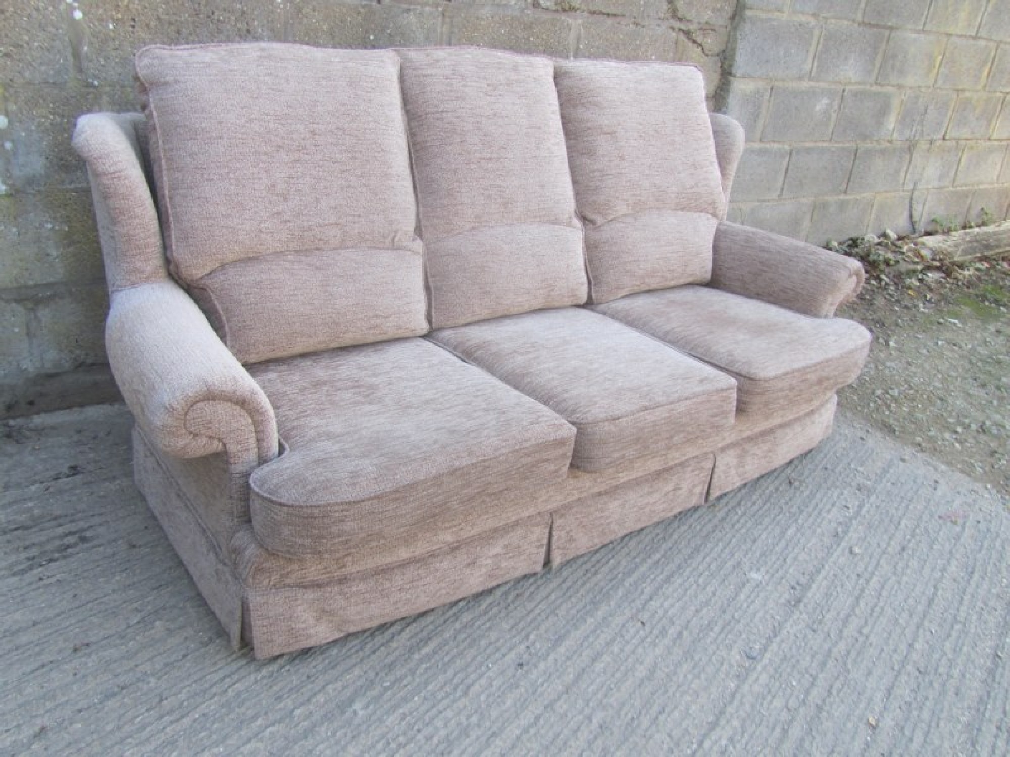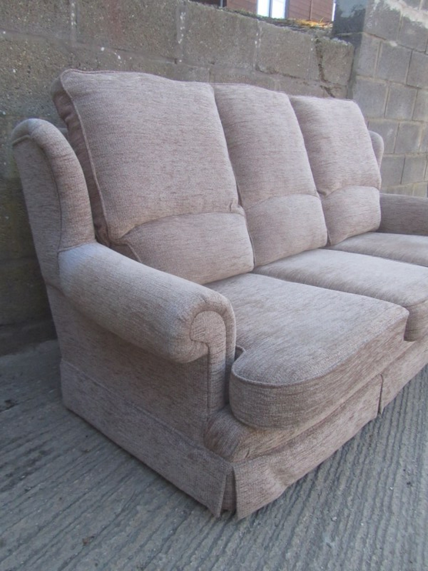 THIS IS A QUALITY 3 SEATER SOFA. GOOD CONDITION. GOOD CLEAN SOFA, FROM A SMOKE FREE & PET FREE HOME. COVERED IN LIGHT BEIGE COLOURED MATERIAL.