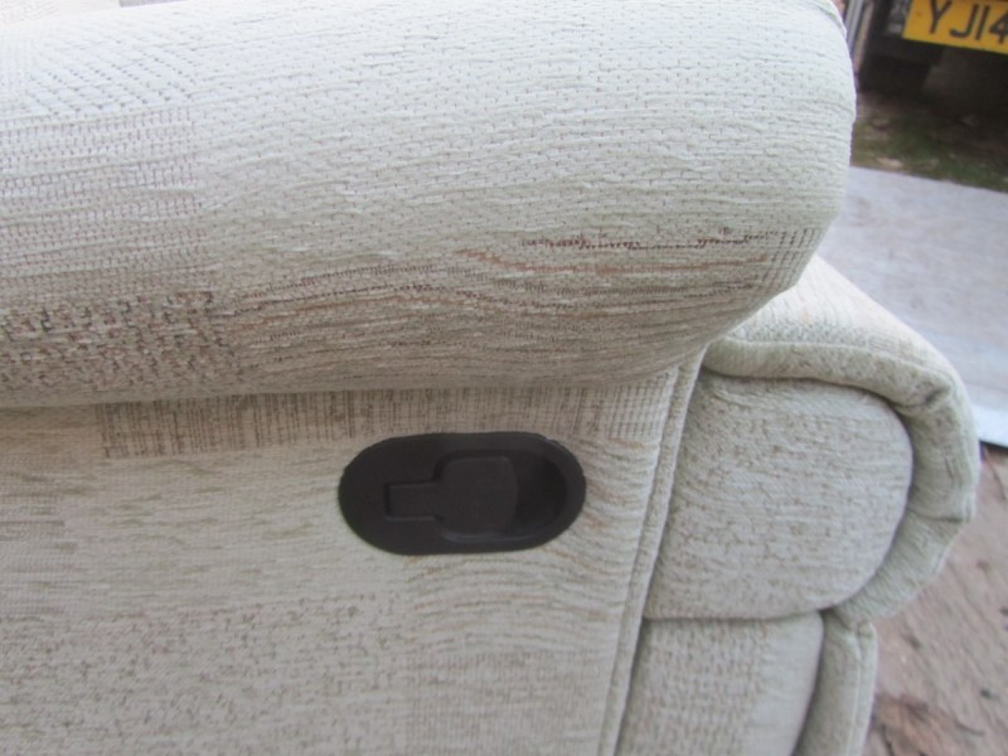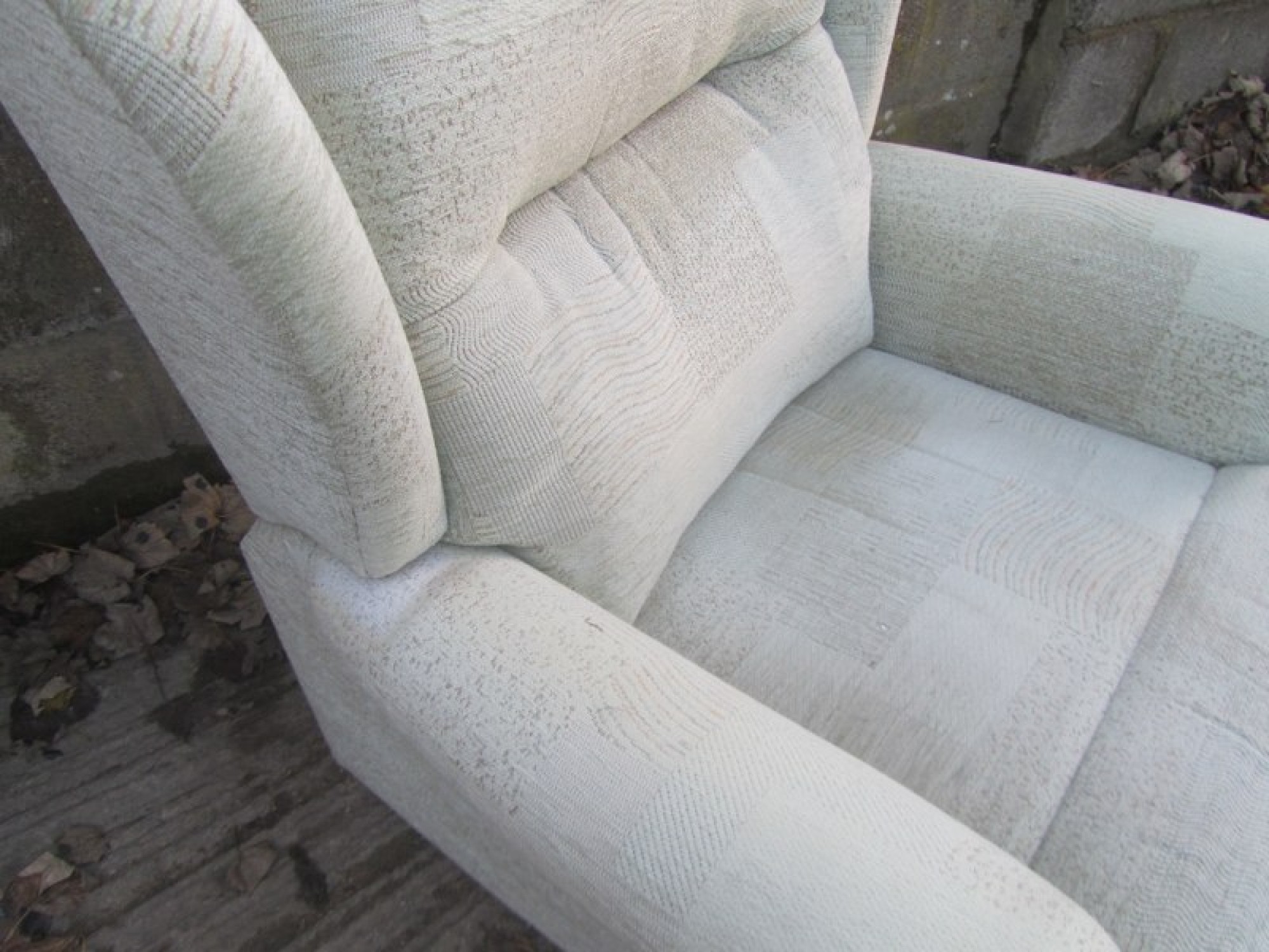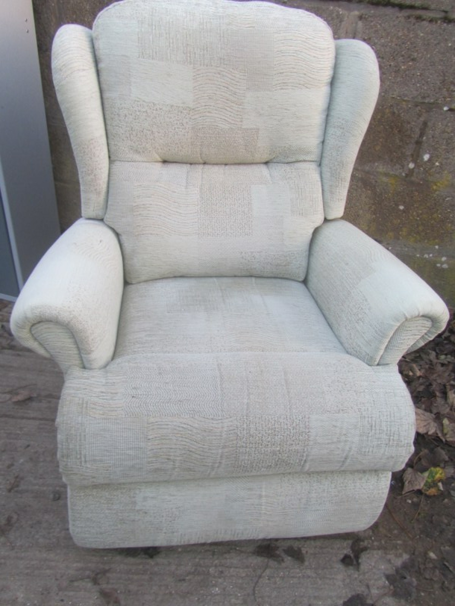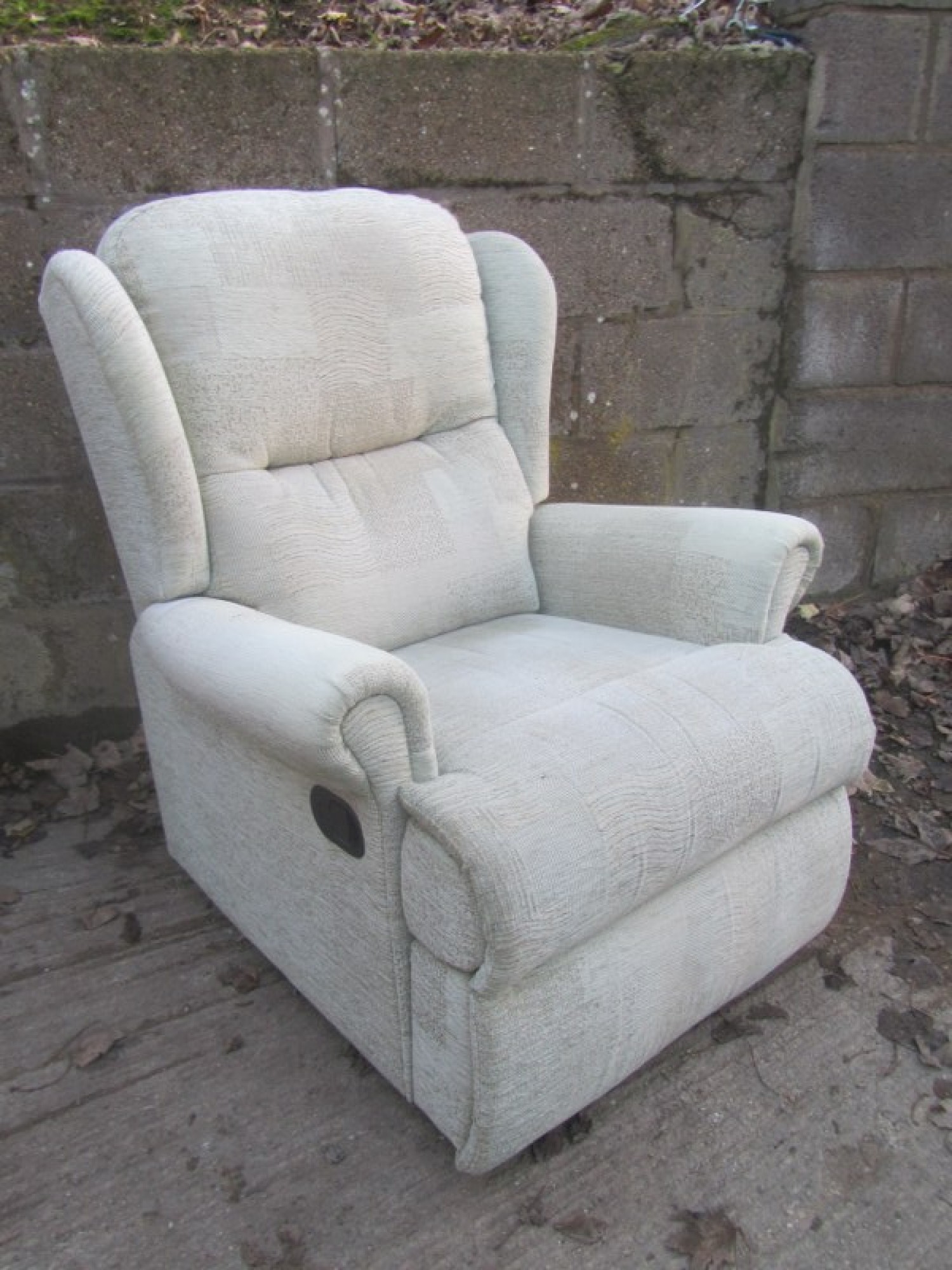 THIS IS A MANUAL RECLINING ARMCHAIR. AVERAGE CONDITION. SOME LIGHT WEAR AND FADING.