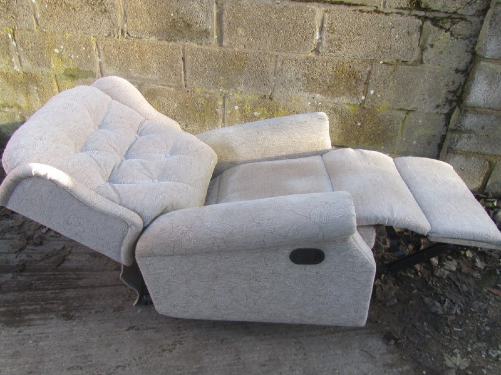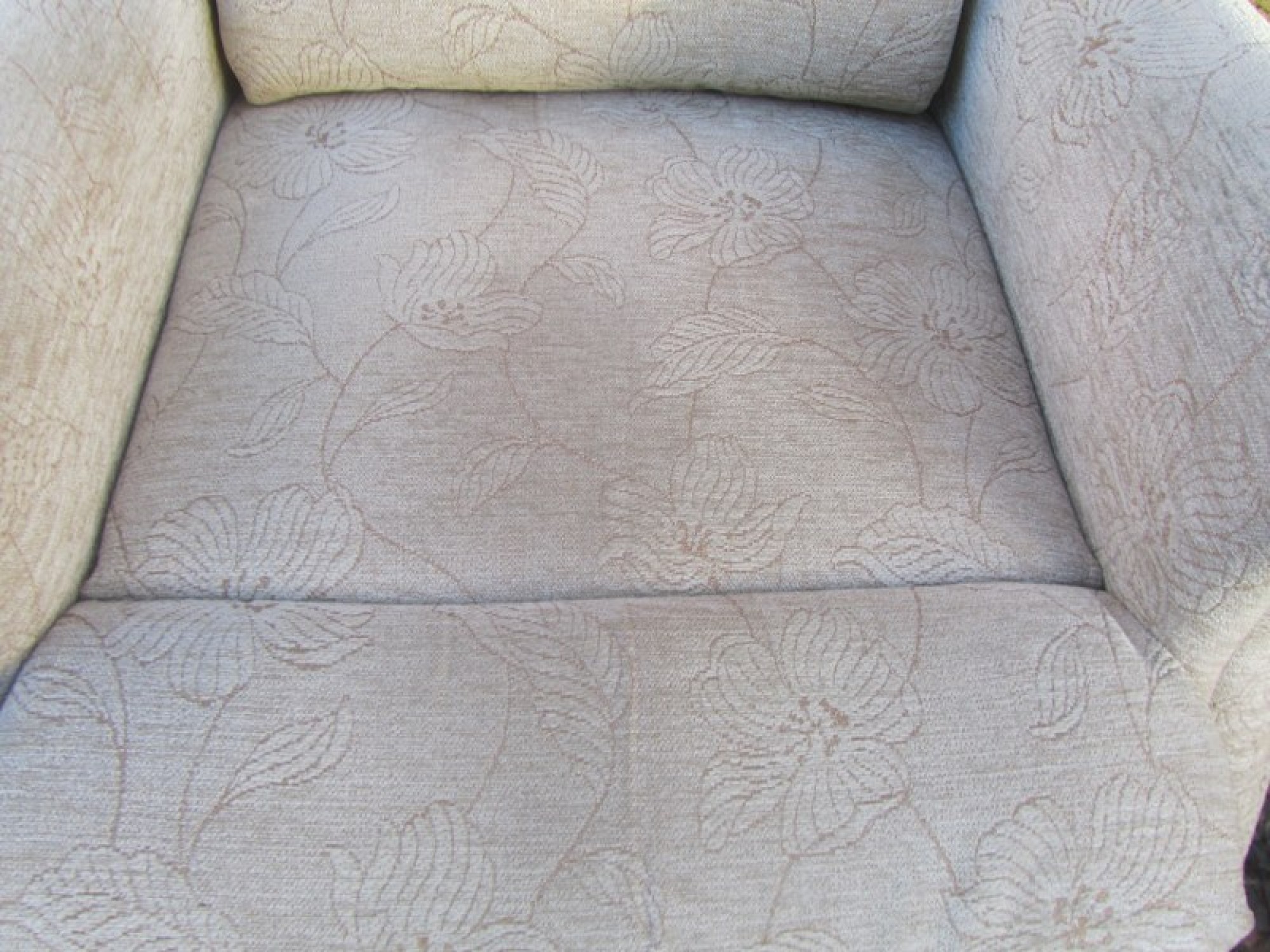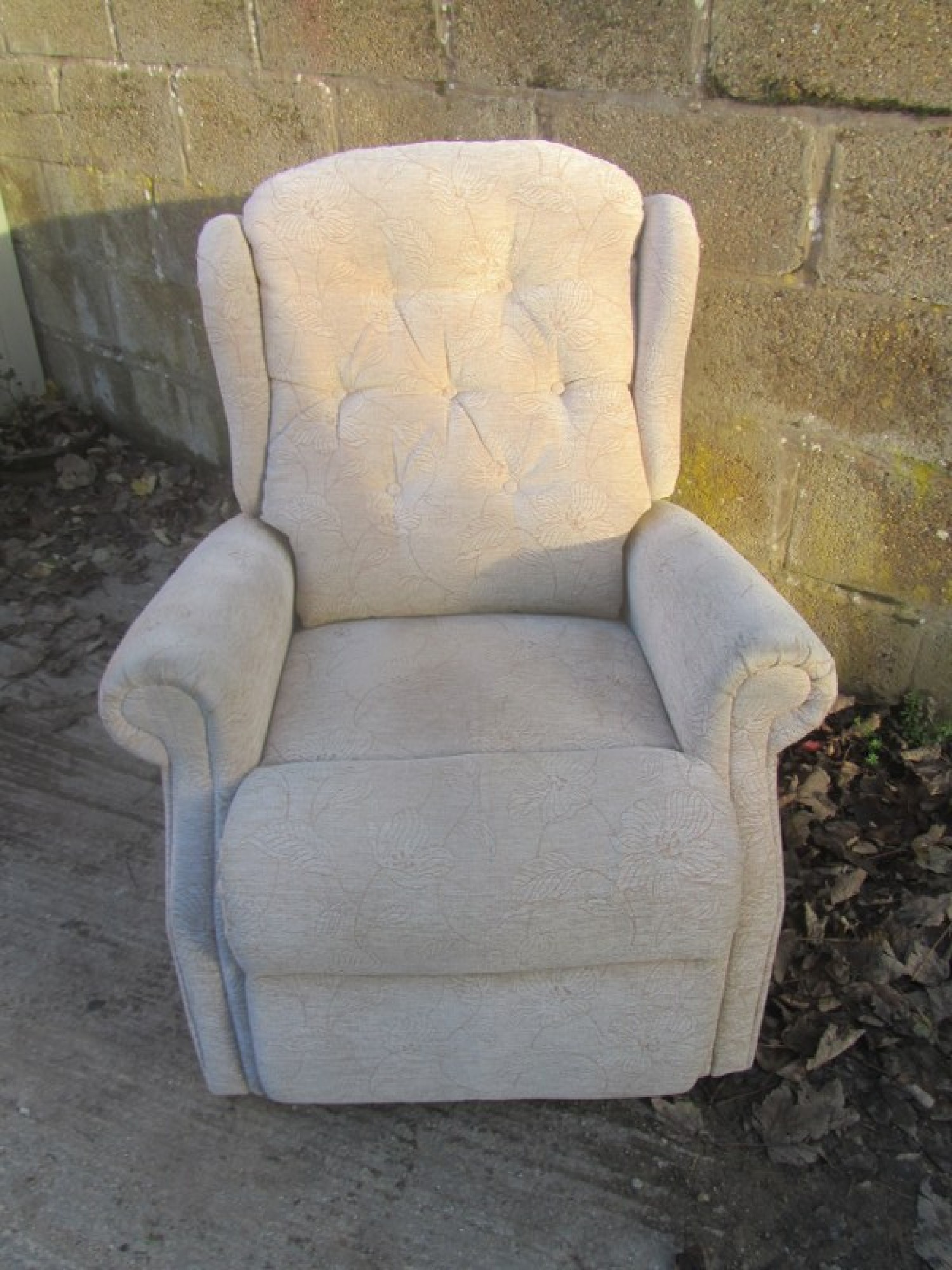 THIS IS A MANUAL RECLINING ARMCHAIR. AVERAGE CONDITION. SOME LIGHT WEAR AND FADING.