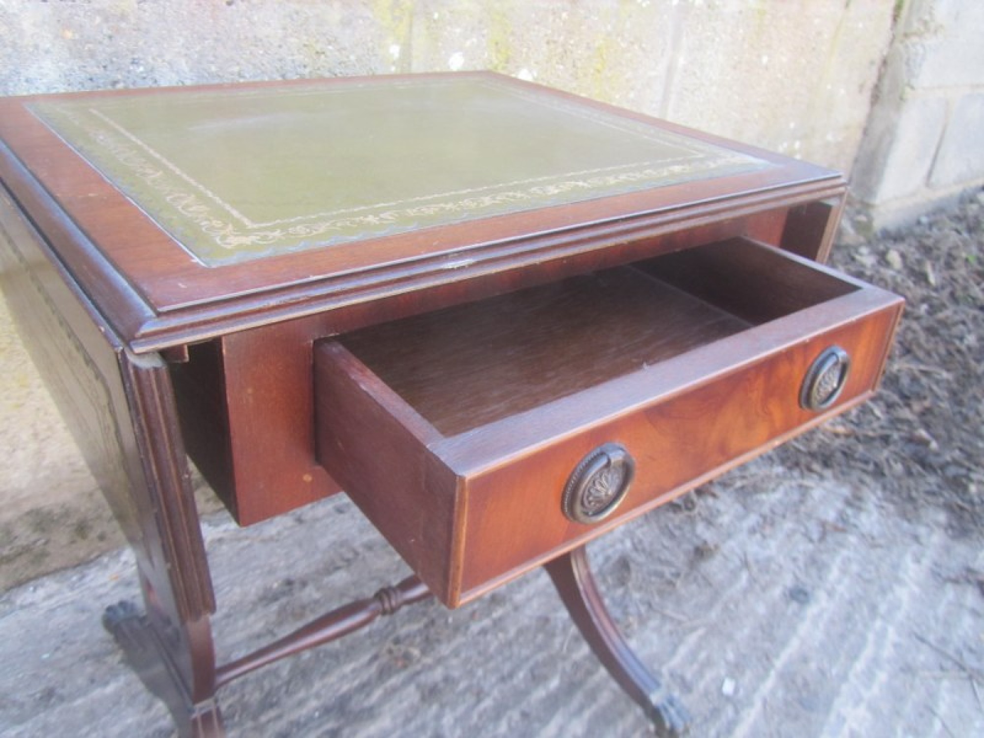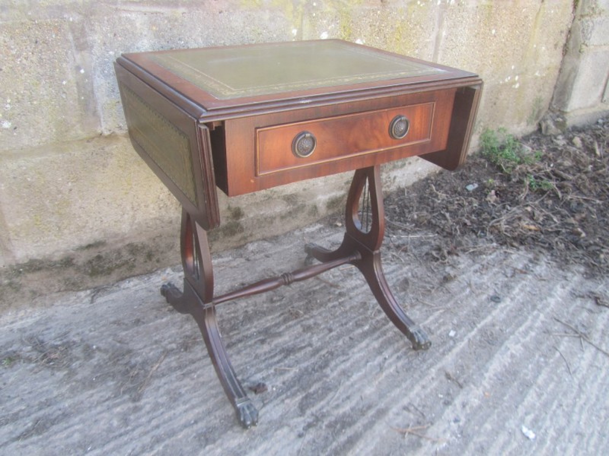 THIS IS A SMALL COFFEE TABLE IN A GEORGIAN REGENCY STYLE. IN A MAHOGANY VENEER, THE FRAME IS STRONG AND STURDY. GOOD QUALITY.