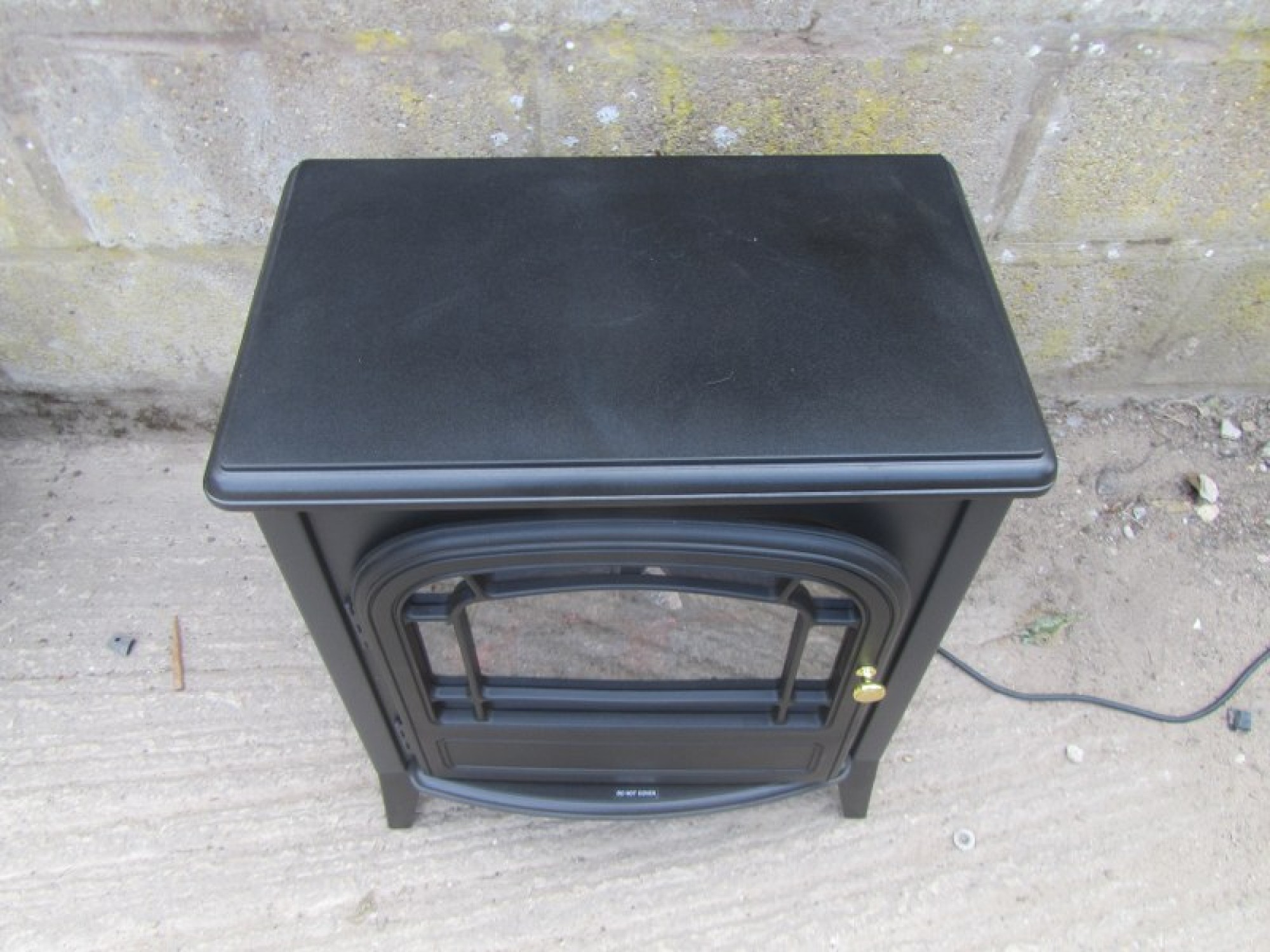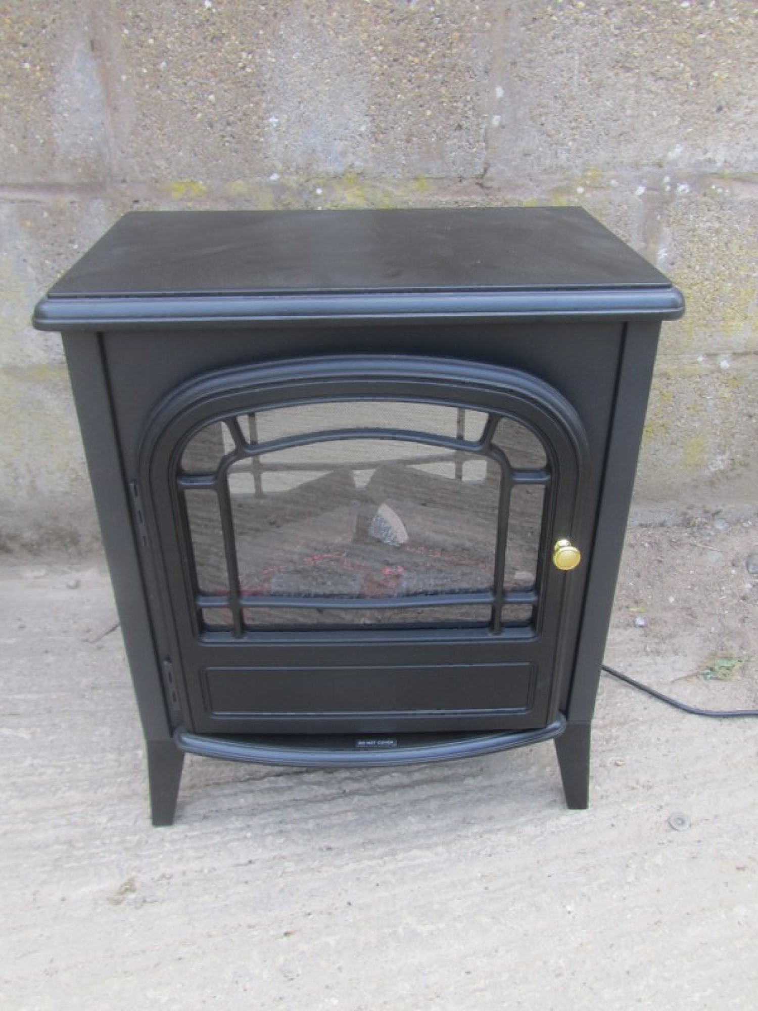 AN ELECTRIC HEATER IN A TRADITIONAL STYLE. IT IS MADE TO LOOK LIKE AN OLD STOVE / WOOD BURNER. IT HAS A FLAME EFFECT COAL FIRE. THERE IS A FAN HEATER UNDERNEATH, THERE ARE 2 HEAT SETTINGS.