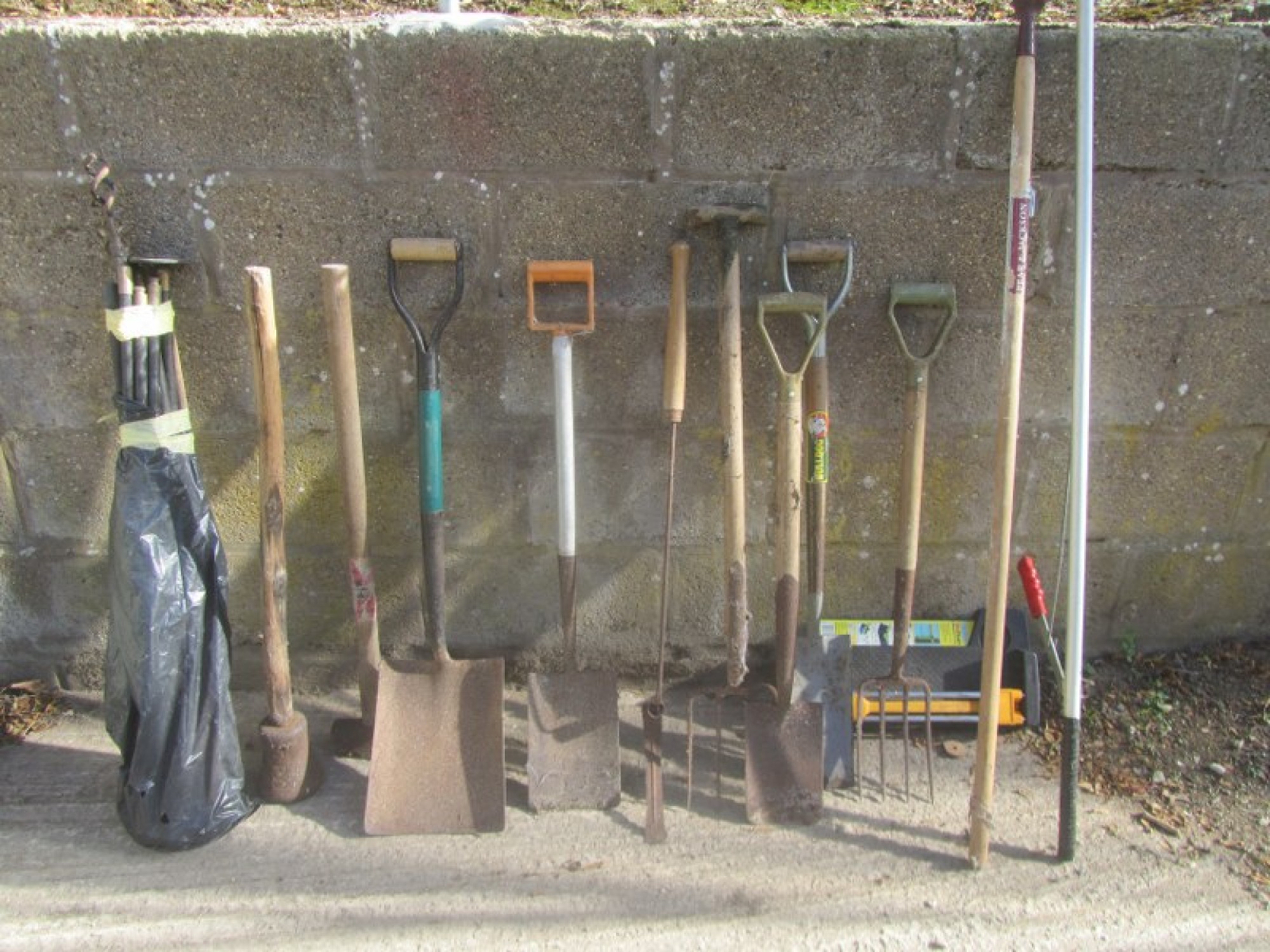 A LARGE JOB LOT OF GARDEN TOOLS, FOR SALE A JOB LOT. A FEW ITEMS HAVE SUFFERED WITH WOOD WORM IN THE PAST, IT IS PROBABLY LONG DEAD! BUT I WOULD RECOMMEND TREATING IT TO BE SURE.