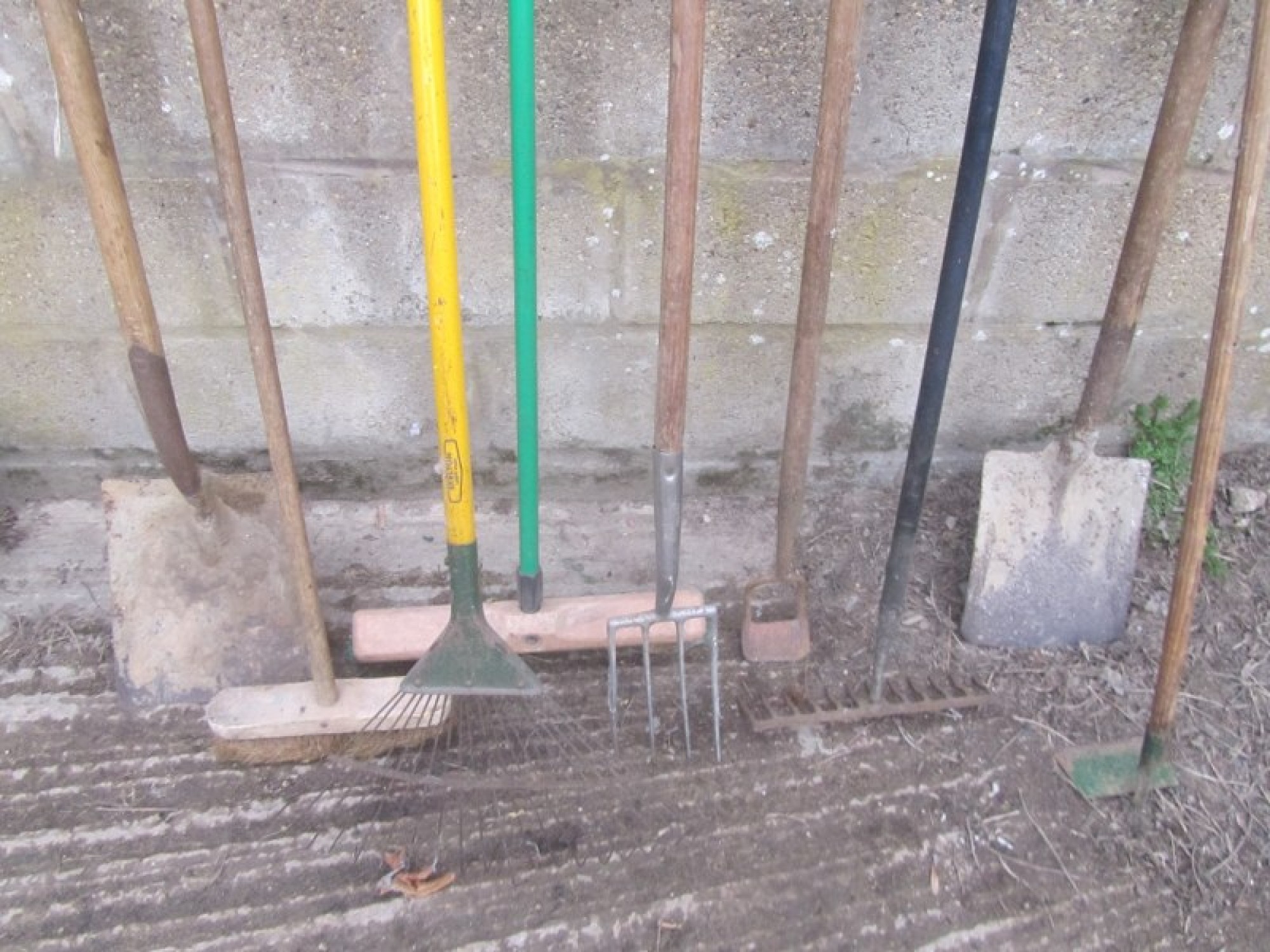 A LARGE JOB LOT OF GARDEN TOOLS, FOR SALE A JOB LOT. SOME OF THE OLDER TOOLS HAVE SUFFERED WITH WOOD WORM IN THE PAST, IT IS PROBABLY LONG DEAD! BUT I WOULD RECOMMEND TREATING IT TO BE SURE.