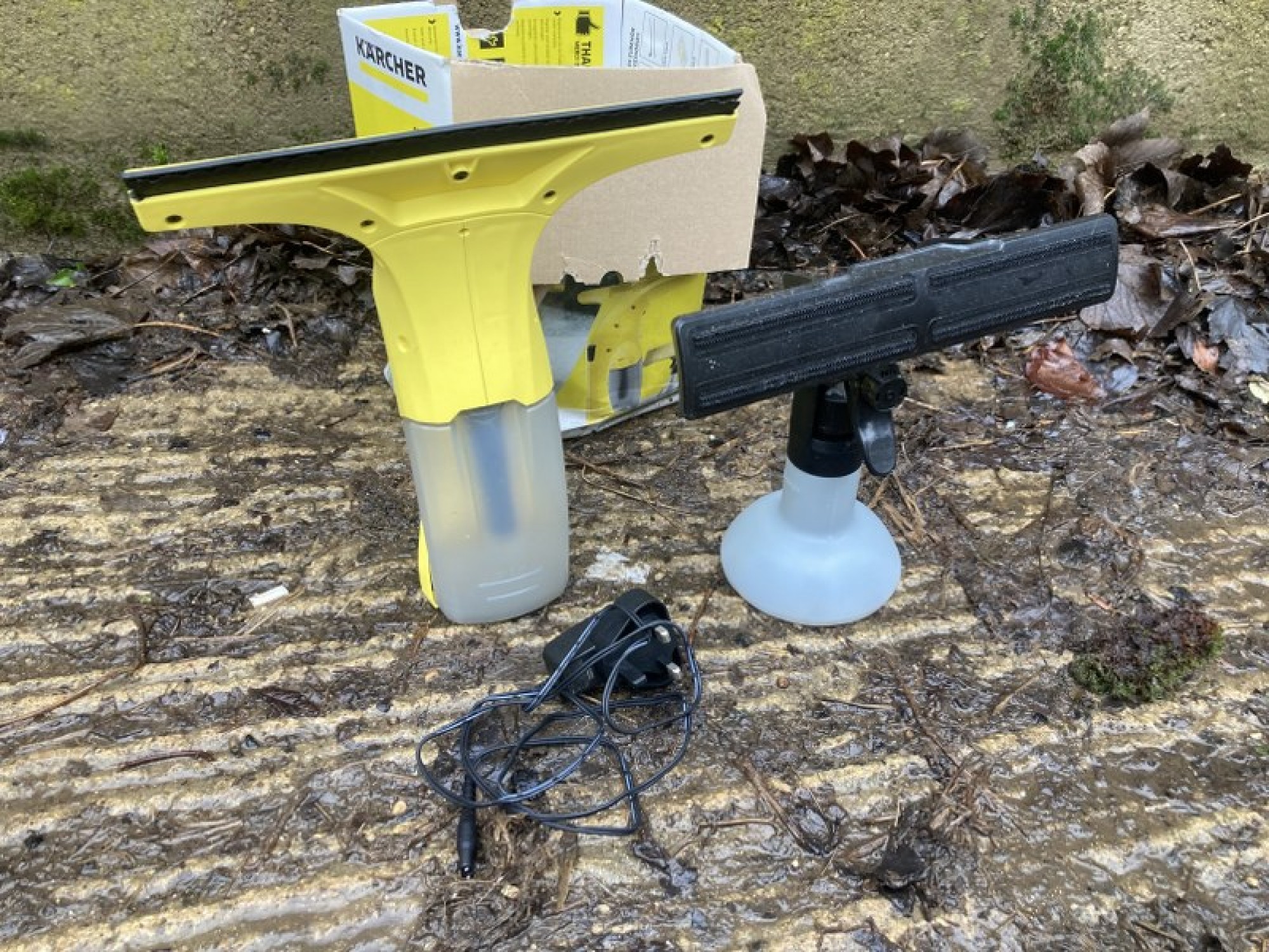 A KARCHER WINDOW VAC / STEAM CLEANER, USED BUT IN GOOD CONDITION.