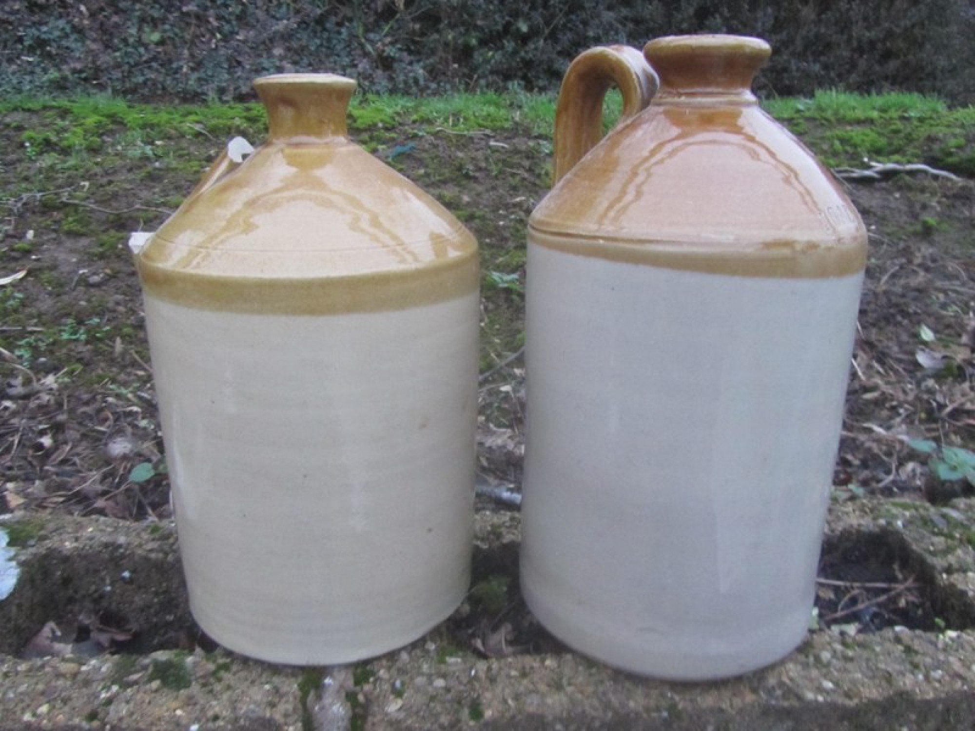 Items for Sale PAIR OF LARGE ANTIQUE STONEWARE FLAGGONS Share: View Larger Image View Larger Image Select to enlarge £ 15 - THE PAIR A PAIR OF LARGE ANTIQUE STONEWARE FLAGGONS. ONE HAS A BROKEN HANDLE. ADDITIONAL DETAILS RESERVE ITEM Condition:AVERAGE Height:38 cms Length:21 cms Depth:21 cms Item Number:41011 * Please complete all the fields below to send an enquiry about this product. Please reserve this item for me… Reset Send