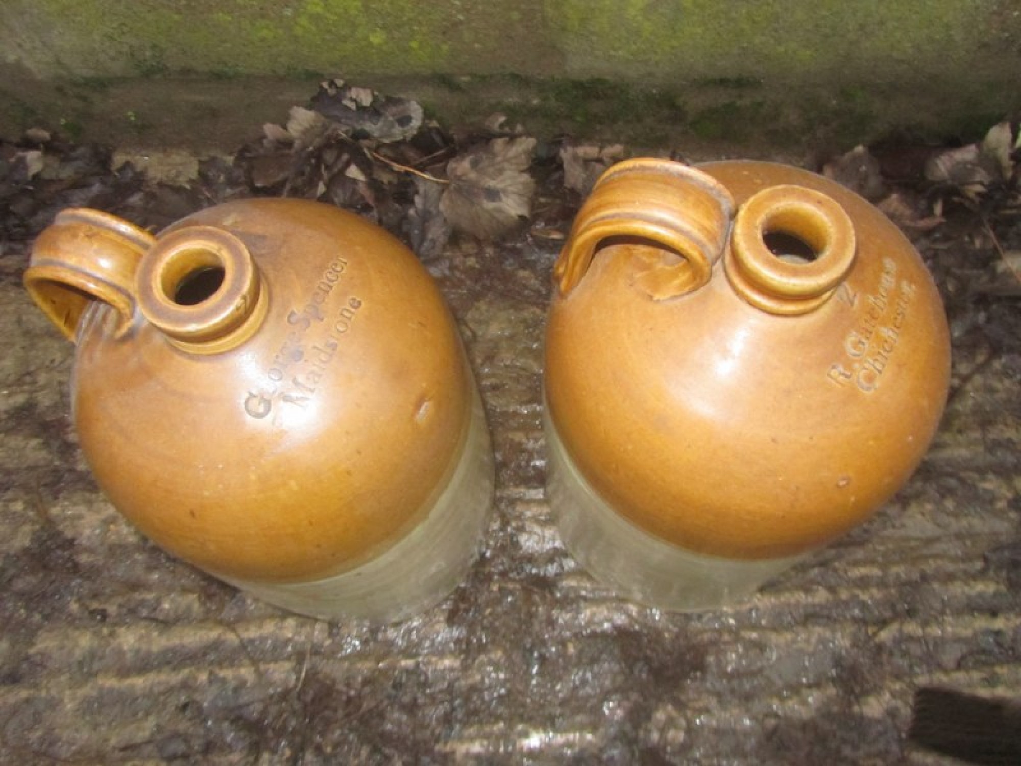 Items for Sale PAIR OF LARGE ANTIQUE STONEWARE FLAGGONS Share: View Larger Image View Larger Image Select to enlarge £ 15 - THE PAIR A PAIR OF LARGE ANTIQUE STONEWARE FLAGGONS. ADDITIONAL DETAILS RESERVE ITEM Condition:AVERAGE Height:31 cms Length:18 cms Depth:18 cms Item Number:41012 * Please complete all the fields below to send an enquiry about this product. Please reserve this item for me… Reset Send
