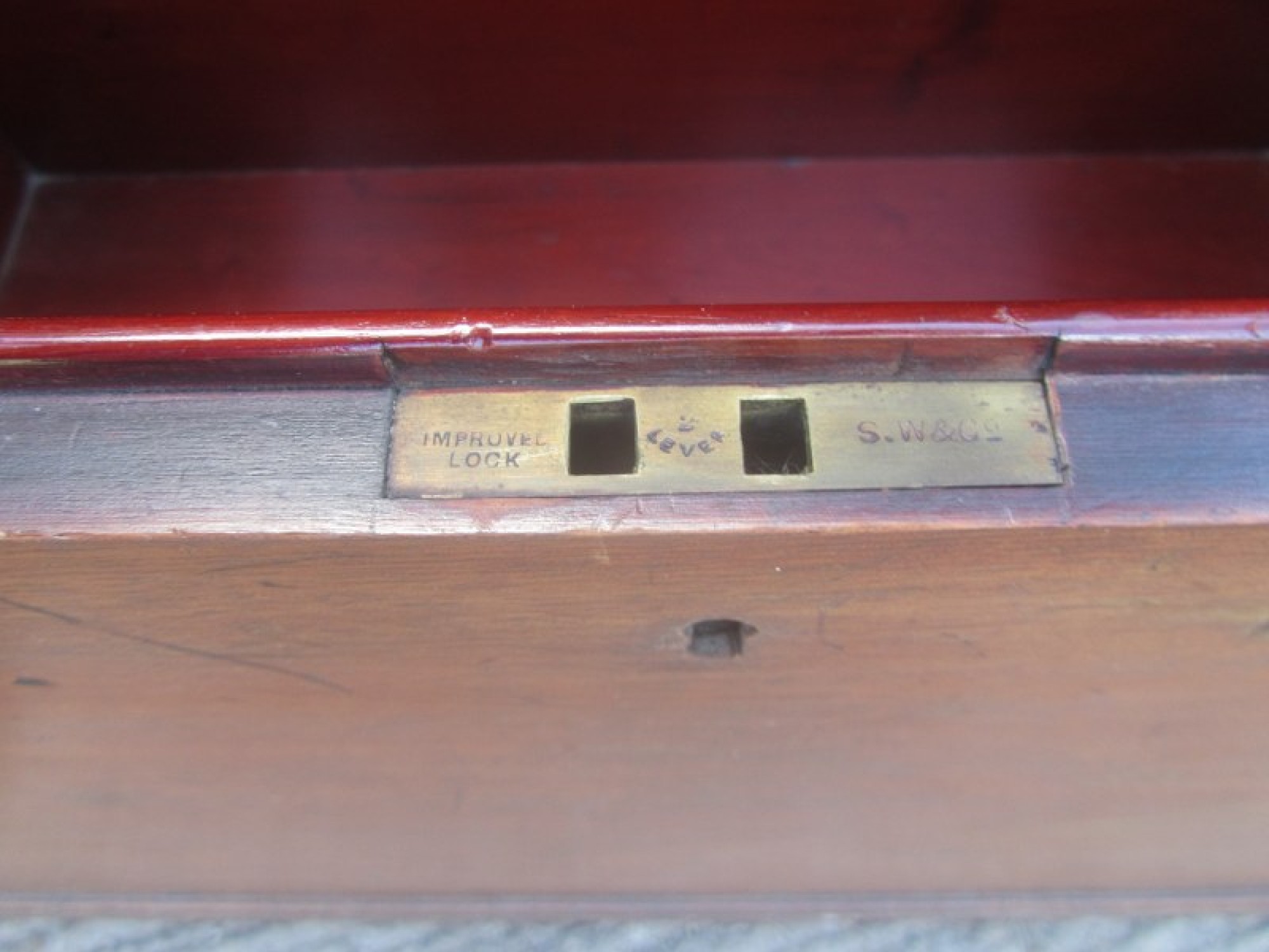A LARGE ANTIQUE BLANKET BOX. SOLID MAHOGANY, FADED ON THE OUTSIDE. SOME WEAR. THE METAL HANDLES ARE MISSING. STRONG AND STURDY. IDEAL STORAGE OR COFFEE TABLE.
