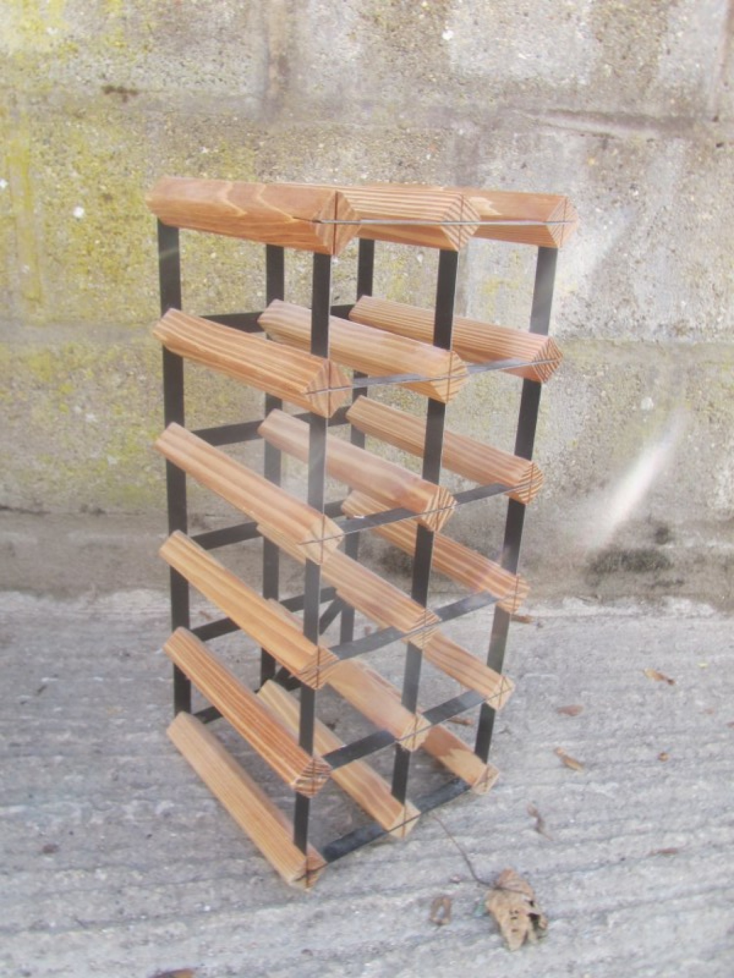 A SIMPLE METAL FRAMED WINE RACK. FLOOR STANDING, IDEALLY NEEDS FIXING TO A WALL TO AVOID IT TIPPING OVER!