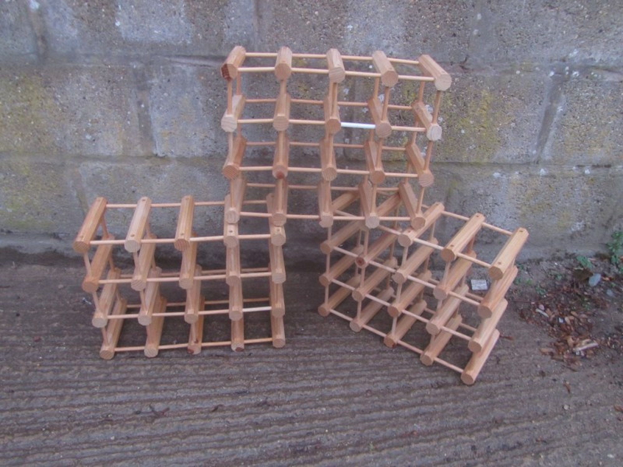 3 WOOD FRAMED WINE RACK. FLOOR STANDING, IDEALLY NEEDS FIXING TO A WALL TO AVOID IT TIPPING OVER!