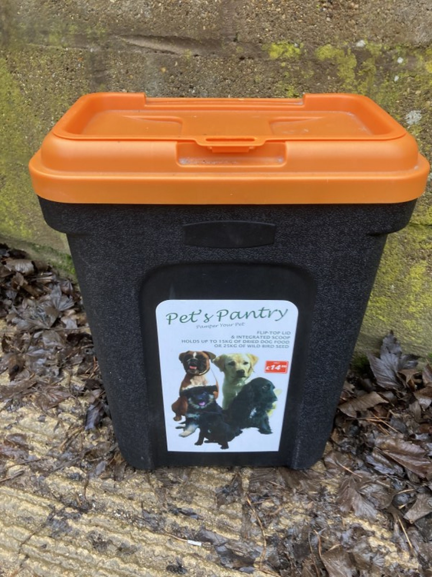 Items for Sale PLASTIC CAT / DOG / PET FOOD CONTAINER / BIN Share: View Larger Image View Larger Image Select to enlarge £ 5 A PLASTIC PET FOOD CONTAINER. ADDITIONAL DETAILS RESERVE ITEM Condition:GOOD Manufacture Date:2020s Height:55 cms Length:42 cms Depth:25 cms Quantity:1 Item Number:40842 * Please complete all the fields below to send an enquiry about this product. Please reserve this item for me… Reset Send