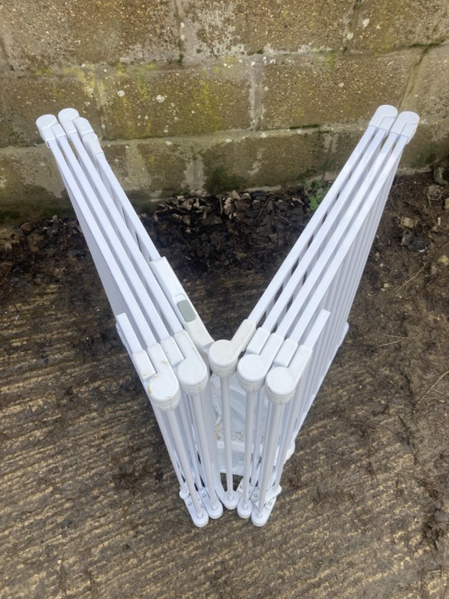 A LARGE METAL PLAYPEN FOR CHILDREN OR DOGS, IT GOES FLAT FOR STORAGE. NO TOP, JUST SIDES. 8 SECTIONS, EACH SECTION IS 81cm WIDE.