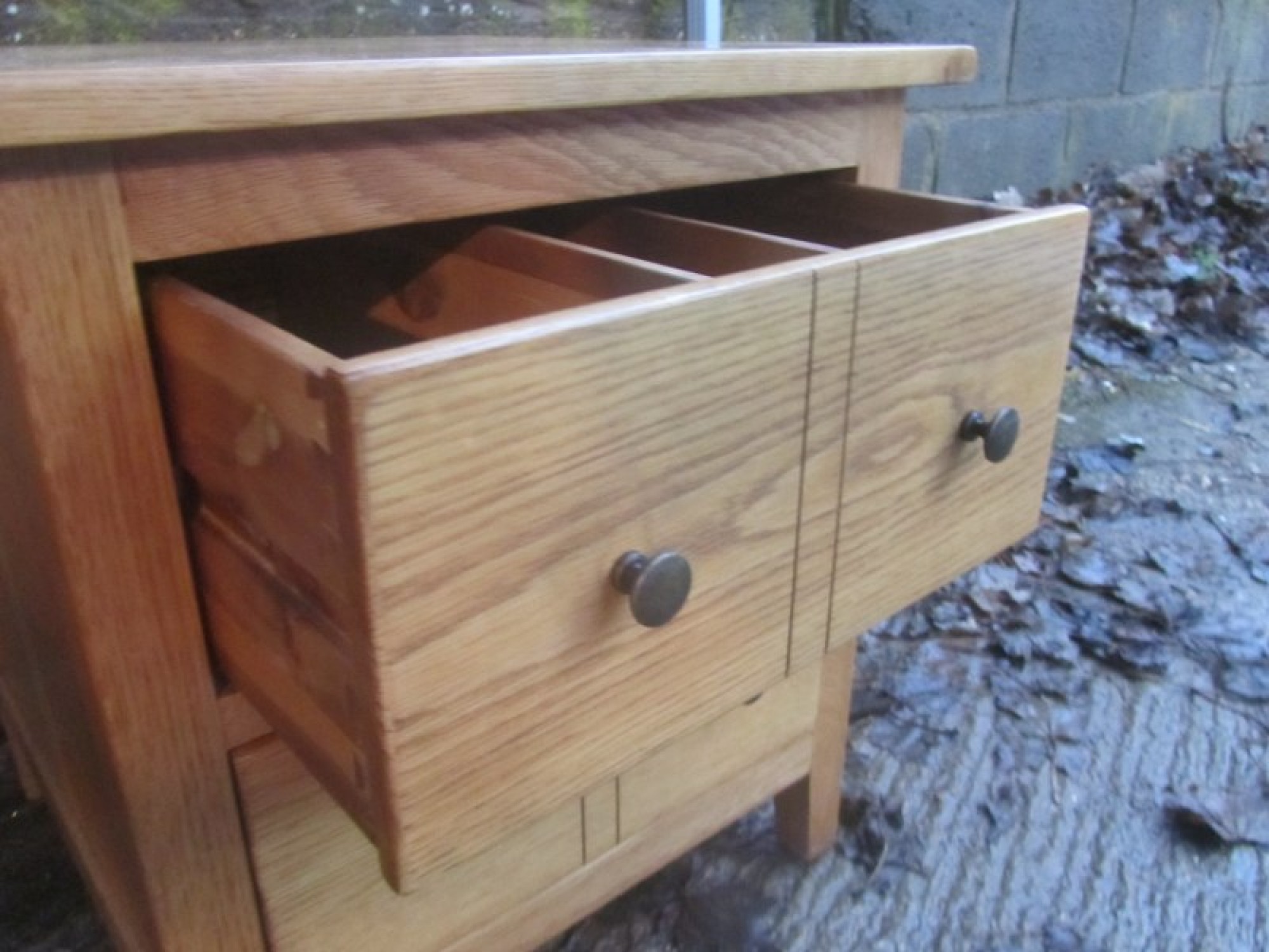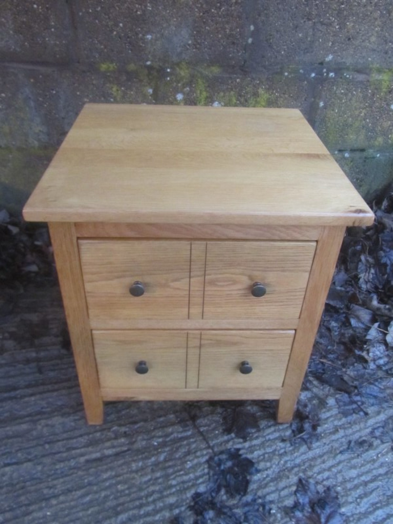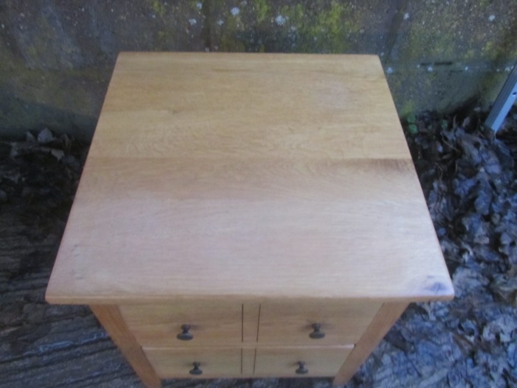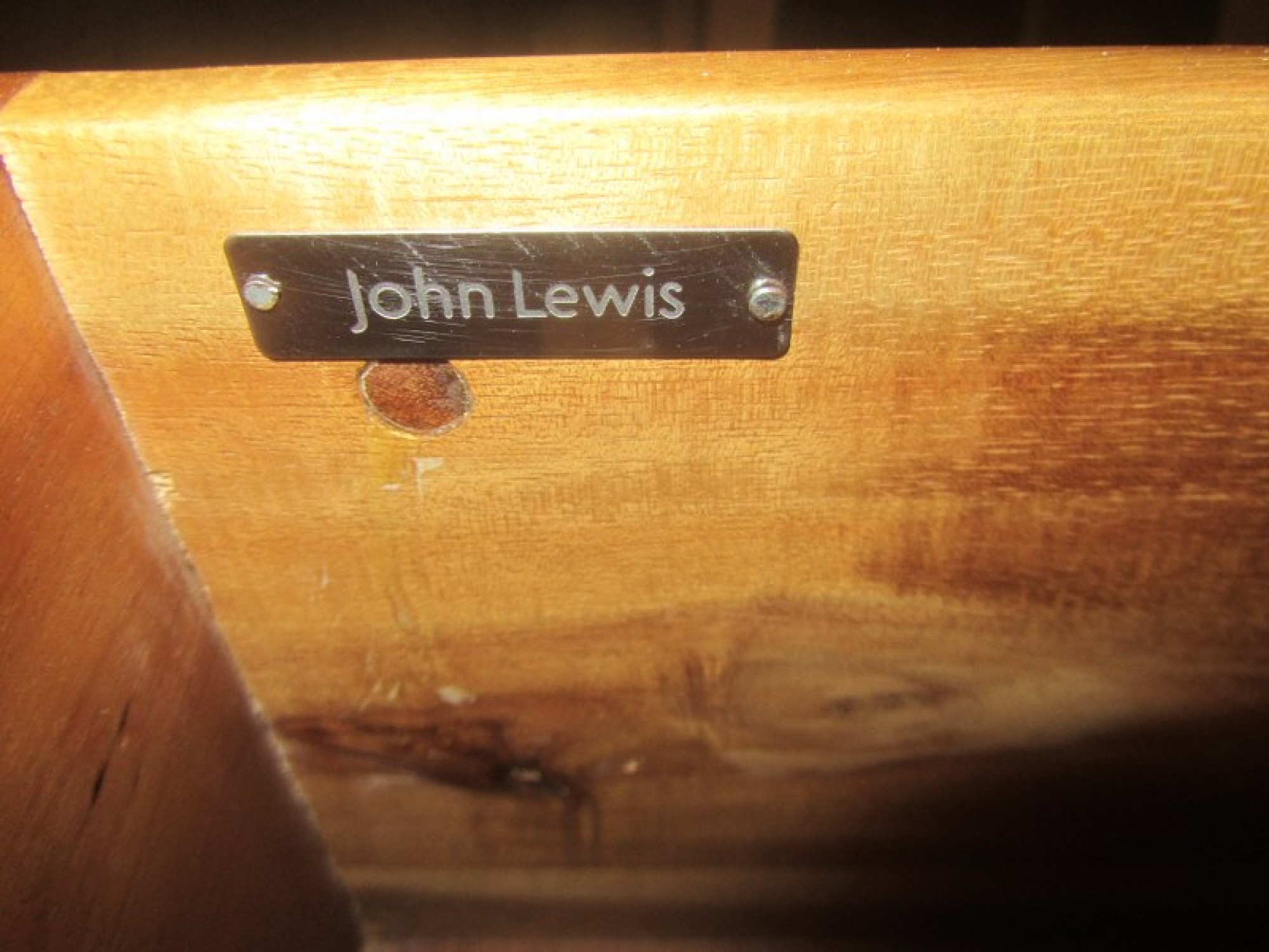 A MODERN SMALL CHEST OF DRAWERS, IT IS IN OAK, STRONG AND STURDY. GOOD QUALITY. MADE BY 'JOHN LEWIS'.
