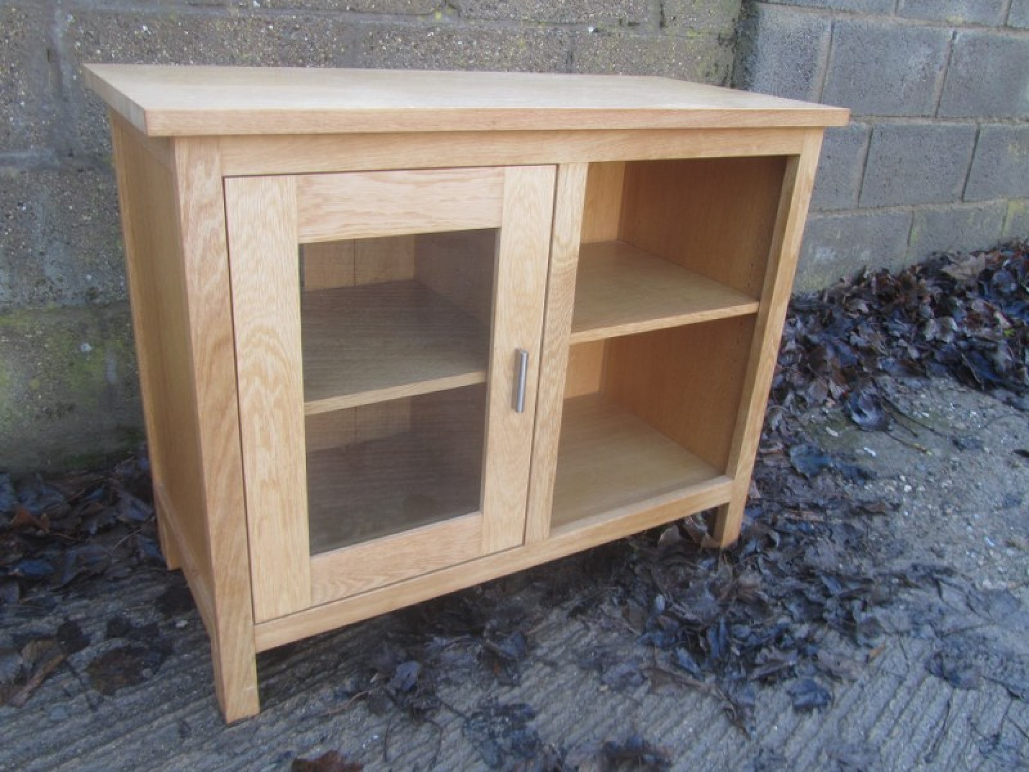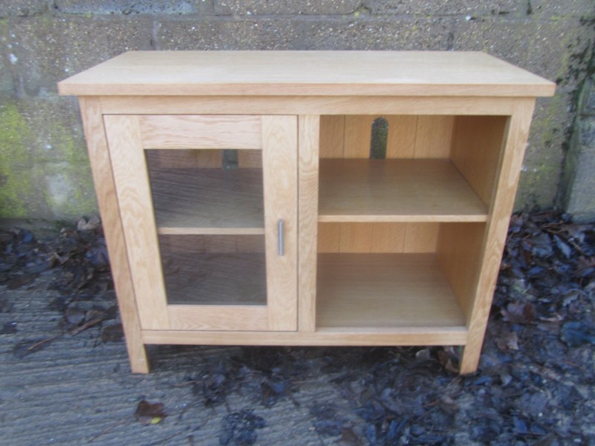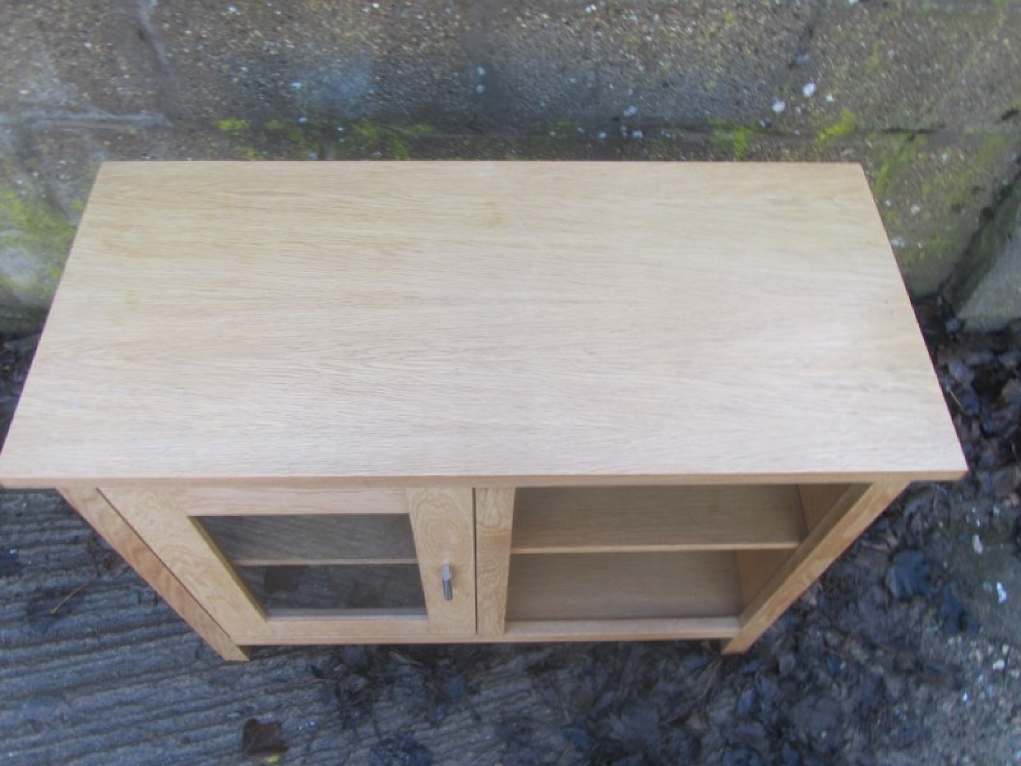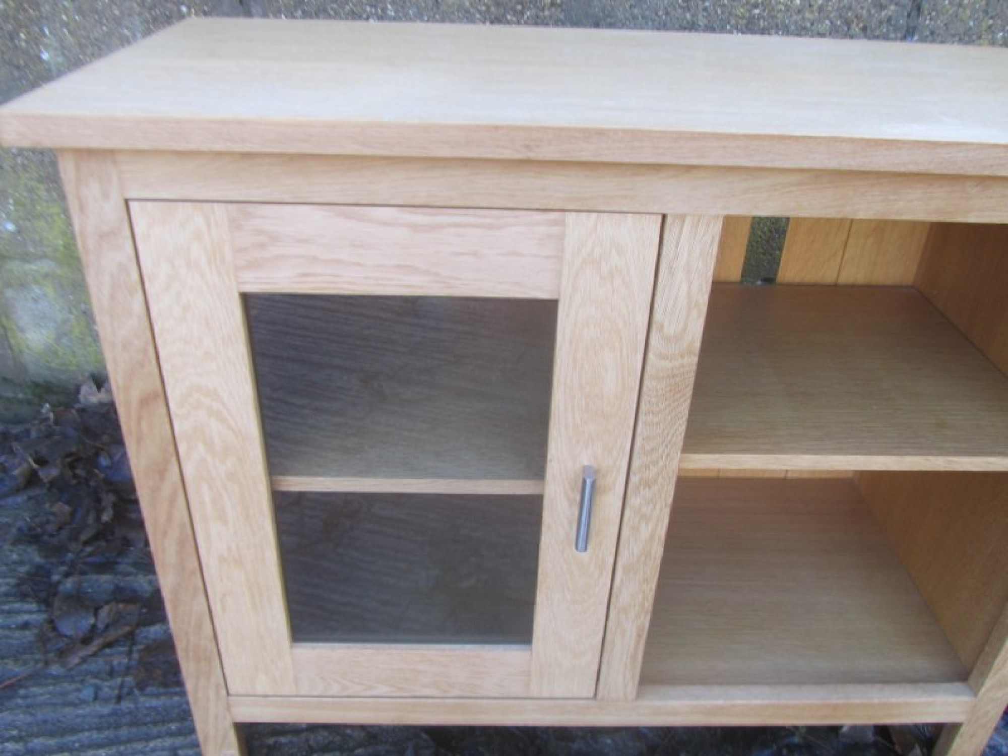A MODERN TV UNIT / SIDEBOARD, OAK VENEERED, IT IS STRONG AND STURDY. GOOD CONDITION.