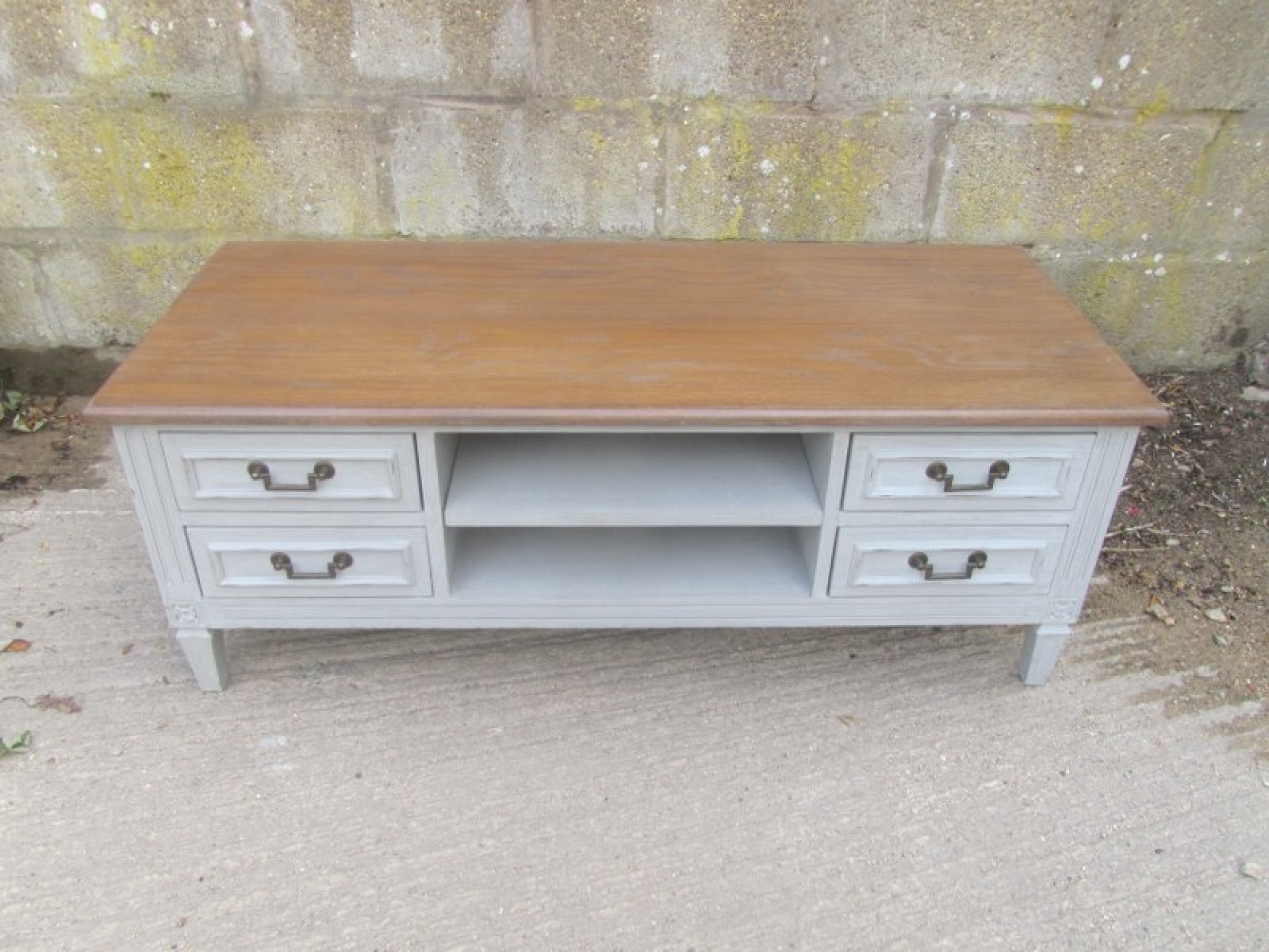A MODERN TV UNIT / SIDEBOARD, IN A FRENCH STYLE, IT IS STRONG AND STURDY. PAINTED, SOME SCUFFS.