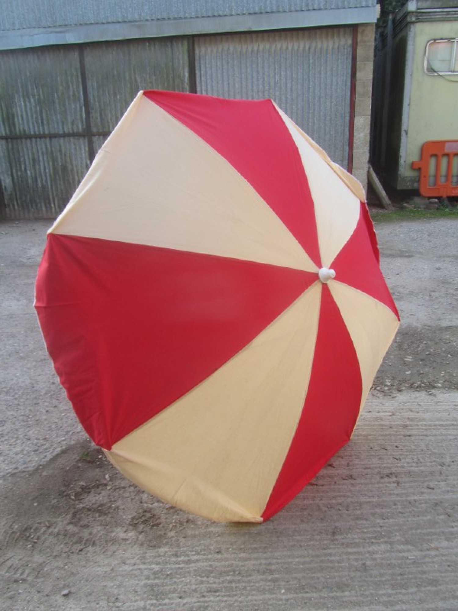 A LARGE PARASOL FOR THE GARDEN. TO GIVE SHELTER FROM THE SUN AND RAIN.