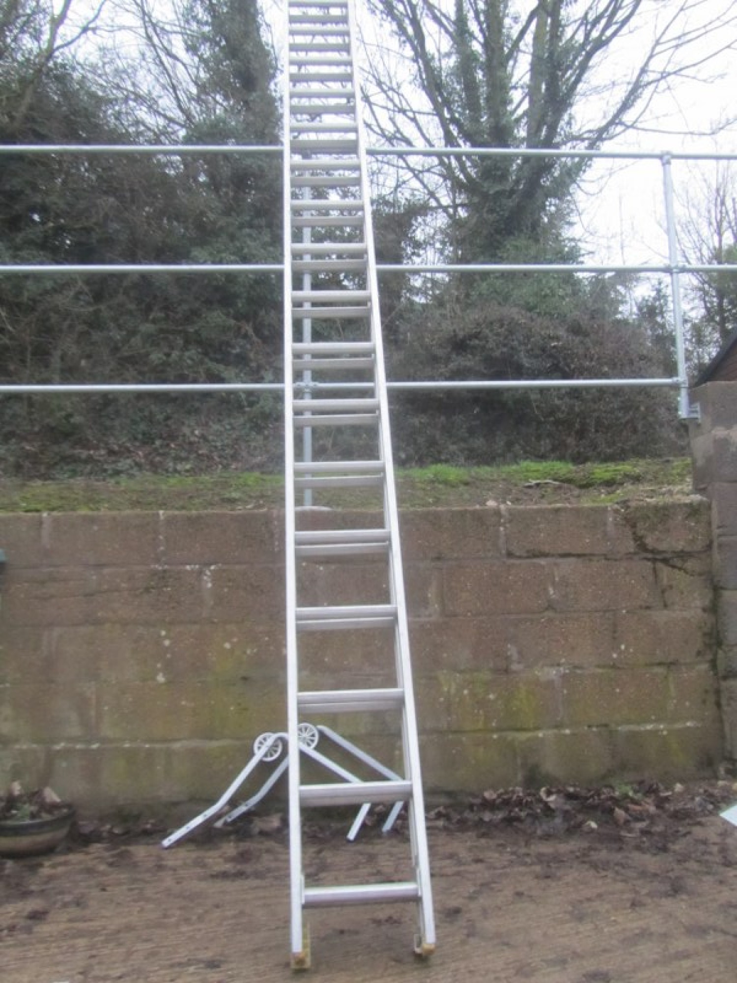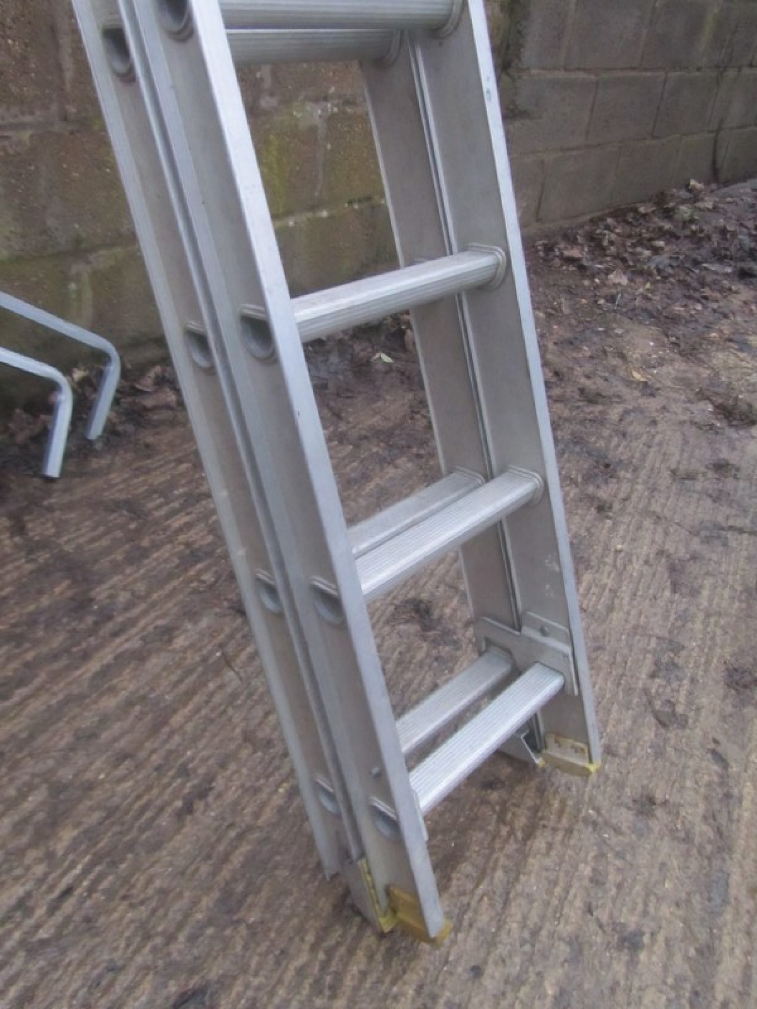 A SET OF LONG LADDERS, THERE ARE 2 SECTIONS, WHEN EXTENDED THEY WILL REACH GUTTERING, WINDOWS etc. A STRONG AND STURDY SET OF LIGHTWEIGHT ALUMINIUM LADDERS. INSTRUCTIONS FOR USE CAN BE FOUND ONLINE.