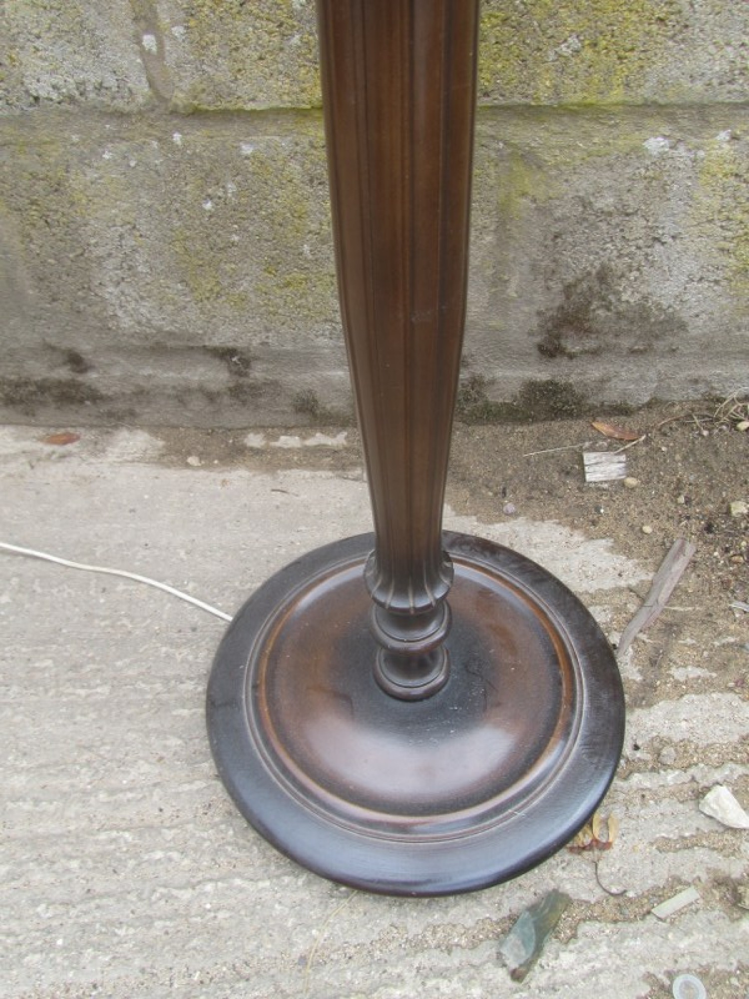 A TALL STANDARD LAMP IN A MAHOGANY COLOUR, AN ATTRACTIVE AND STYLISH LAMP, IDEAL FOR ANYWHERE IN THE HOME. IT TAKES A STANDARD BULB.