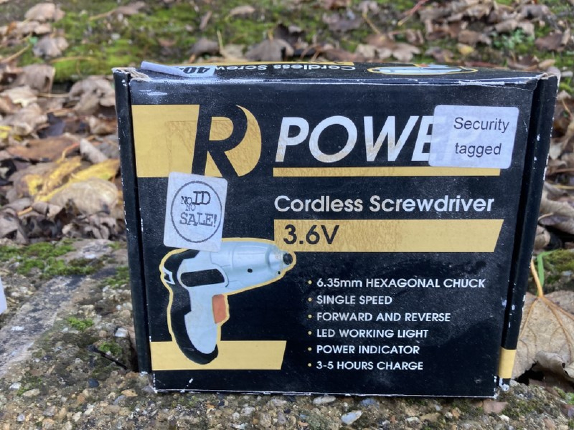 A CORDLESS ELECTRIC SCREWDRIVER, IN BOX.